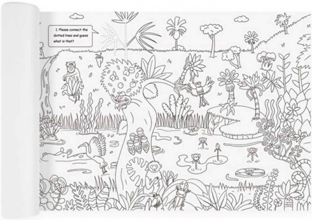 Omalovánka je dlouhá 10 m a je možné ji kdekoli odstřihnout. Omalovánka obsahuje spousty různých rostlin nebo zvířat žijících v džungli.