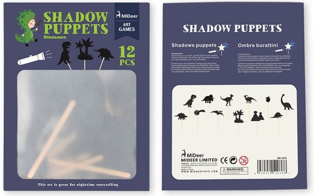 Stínové divadlo je obdobou původního černého divadla, jehož prapočátky spadají do období starověké Číny. Stínové divadlo funguje na principu postaviček, které dělají proti světlu stíny a jejich pohybem se může začít hrát divadlo. Ideální hra pro rodiče s dětmi. Tato hra pomáhá zvyšovat dětskou představivost hravost a zvyšovat jazykové dovednosti. Set obsahuje celkem 12 ks postaviček s tématikou Svět dinosaurů. Rozměry balení: 25 cm x 19 cm x 0,5 cm. Vhodné pro děti od 3 let.
