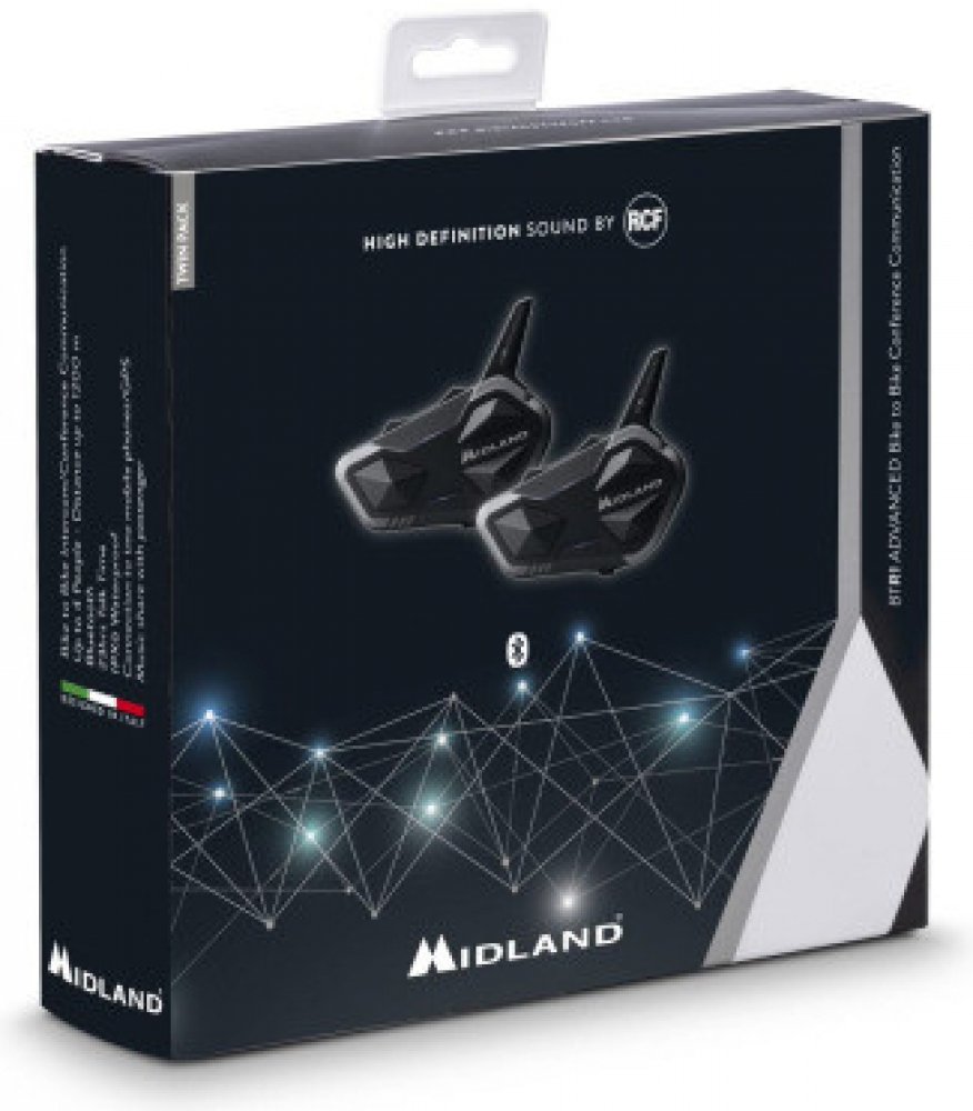 The Midland BTR1 Advanced is a Bluetooth communication system with a great performance. This system is equipped with a technology that allows communication between 4 people up to a distance of 1200 meter in Conference mode. The BTR1 Advanced shares the design and control ergonomics with the top-of-the-range Rush RCF model. It also has Digital Noise Killer, high-definition sound by RCF and a long l...
