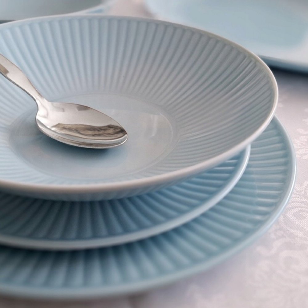 Talířová souprava z kolekce DALIA lagoon kombinuje stylový design v pastelové modré a elegantní tvary nadčasové klasiky.