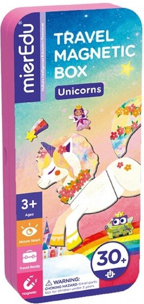 Tato magnetická krabička s motivem jednorožce obsahuje dvě scény a více než 30 magnetických dílků k oblékání postavy a vymýšlení příběhů.