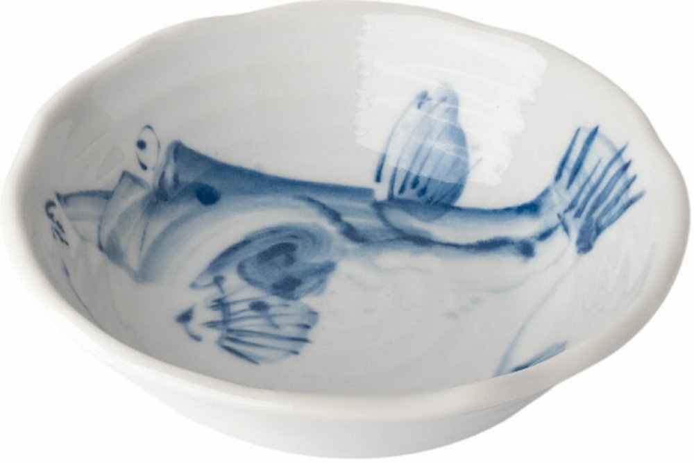 Jídelní miska FUGU působí lehce a hravě díky ručně malovanému modrému motivu fugu ryby, jenž dodává stolování výrazný japonský akcent.