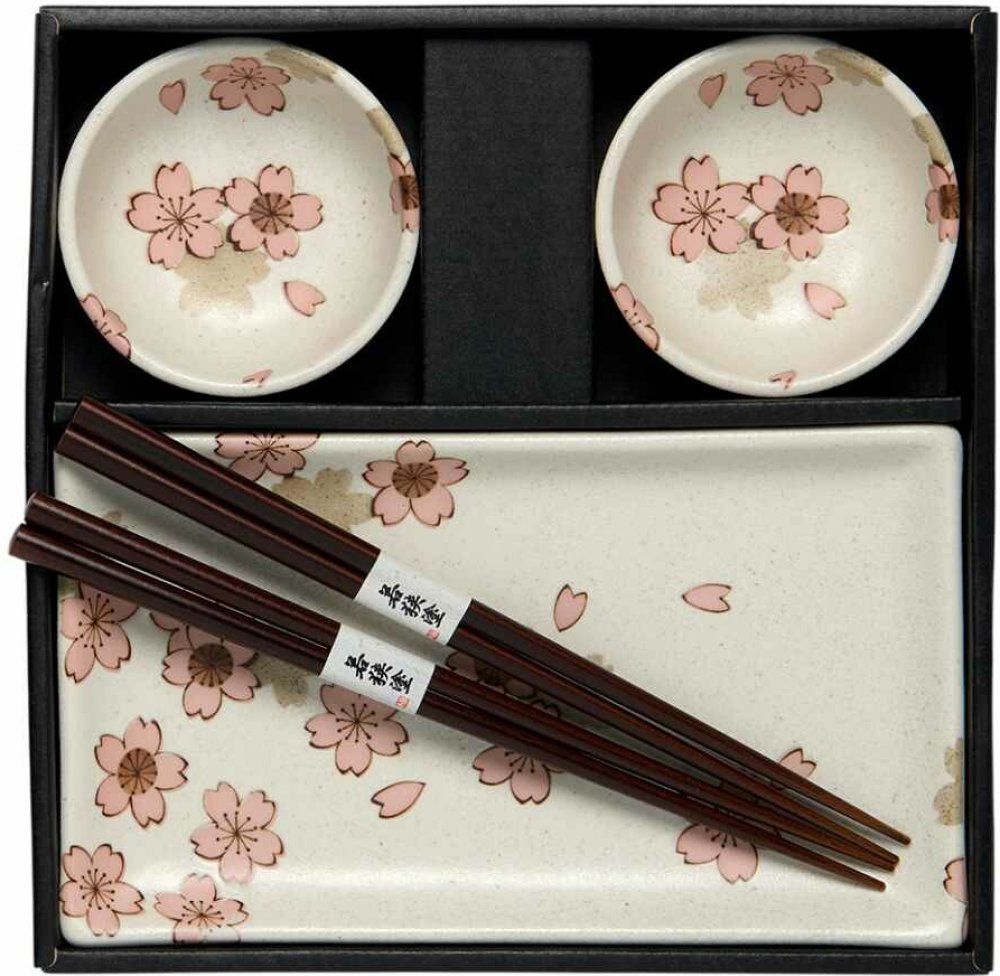sada na konzumaci sushi s designem WHITE & PINK SAKURA pro 2 osoby