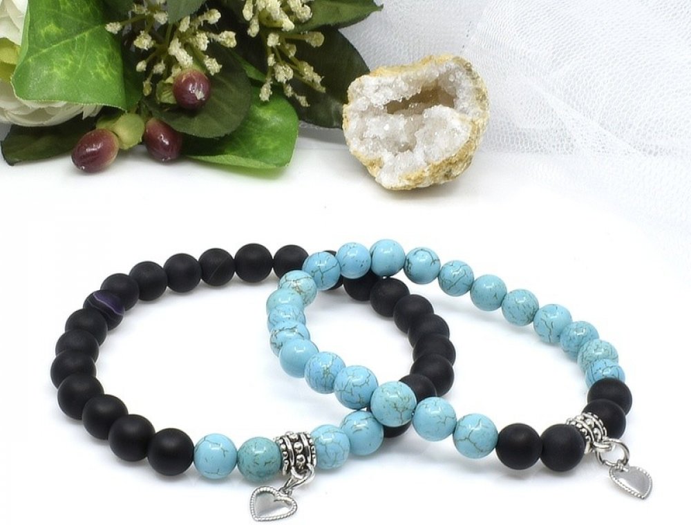 Partnerské náramky z onyxu a tyrkenitu představují harmonii síly a klidu. Černý onyx chrání a dodává odvahu, zatímco tyrkenit s jemnou tyrkysovou barvou přináší klid a vyrovnanost. Tyto minerály tvoří dokonalý soulad – stejně jako vy dva. Partnerské náramky z minerálů jsou ideální způsob, jak vyjádřit propojení a udržet si každý den vzájemnou blízkost.