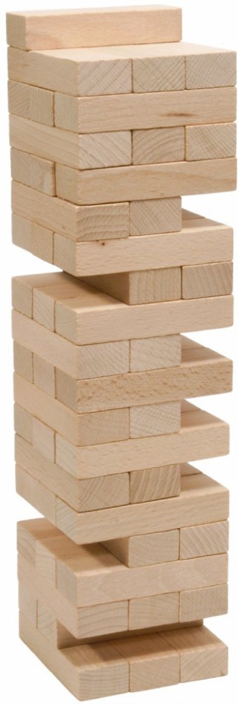 Jenga věž. Součástí balení této zábavné a napínavé rodinné hry jsou pravidla v češtině, angličtině, němčině i francouzštině. Věž také výborně slouží jako stavebnice pro menší děti od 3 let. Vyrobeno z kvalitního bukového dřeva.