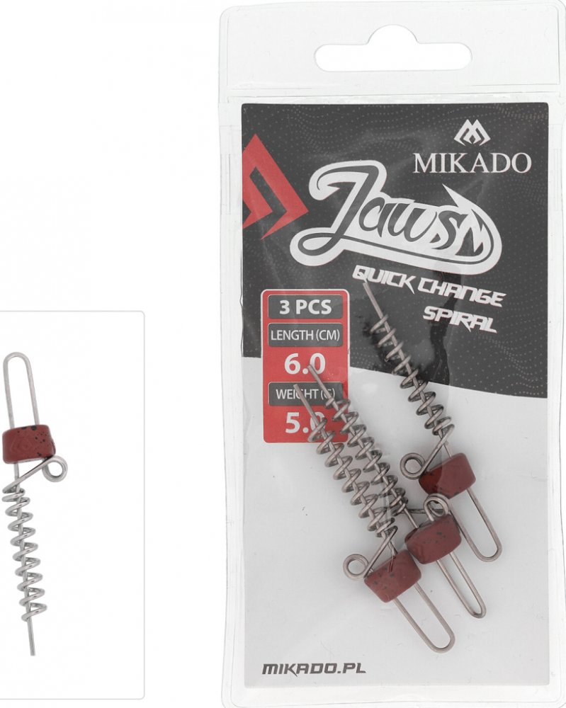 Spirála pro měkké nástrahy se systémem rychlé výměny zátěže, která nevyžaduje vyjmutí spirály z nástrahy během výměny, tím guma zůstane neporušená, i když je třeba změnit hmotnost vícekrát.