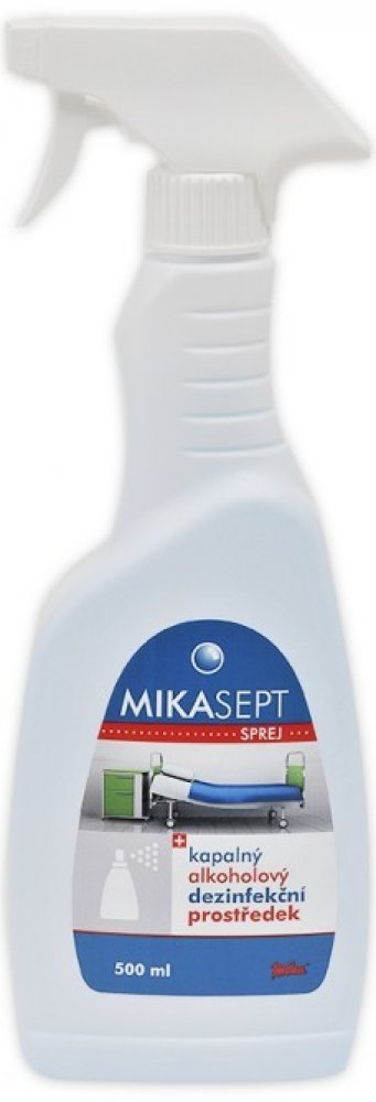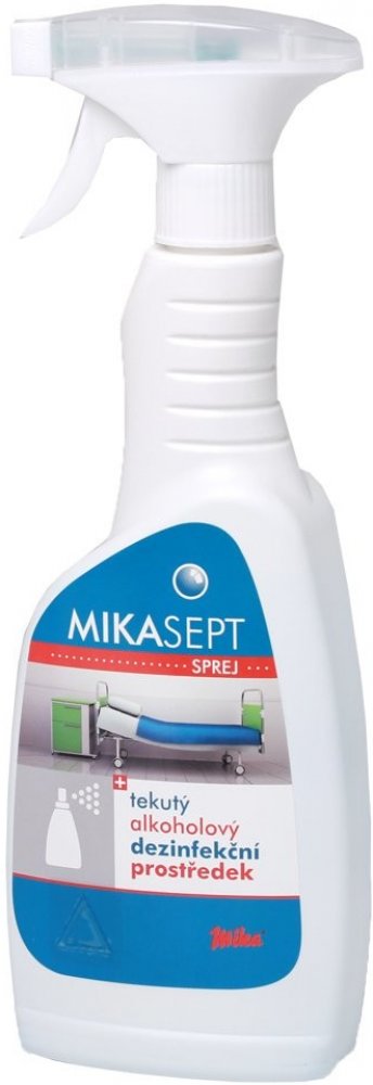 Tekutý alkoholový dezinfekční prostředek pro rychlou dezinfekci malých ploch, zdravotnických prostředků, povrchů, předmětů, nedostupných míst a nástrojů postřikem. Vlastnosti: Spolehlivý širokospektrální dezinfekční prostředek. Účinný proti bakteriím (včetně MRSA), kvasinkám i mikroskopickým kvasinkovým houbám. Jednoduše se aplikuje postřikem a má okamžitý účinek, neředí se. Rychle zasychá, na povrchu nezanechává skvrny a je šetrný k povrchům. Přípravek prokázal deklarovanou účinnost na MRSA v čase 5 min. Účinné látky ve 100g přípravku: Ethanol 50g, Propan-2-ol 22g Oblast použití: zdravotnická zařízení, polikliniky, domovy důchodců, soc. ústavy, lázeňství ordinace, ambulance, vyšetřovny, domácí péče kosmetika, kadeřnictví, manikůra, pedikůra Spektrum účinnosti: A, (B), C, T, M, V, MRSA Způsob použití: Koncentrovaný MIKASEPT Sprej se pomocí rozprašovače aplikuje na plochu zbavenou viditelných mechanických nečistot. Plochy, nedostupná mista, povrchy předmětů, nástrojů se nechají zaschnout, neotírají se. Doporučené dávkování 40 - 50 ml/m² . Doba působení přípravku 1 - 3 minuty. Skladování: Výrobky se skladují v běžných, krytých, čistých skladech, chráněných před povětrnostními vlivy a přímým slunečním zářením, odděleně od potravin, nápojů a krmiv, vždy v originálním balení při teplotě 0 až +25 °C. Pokyny pro zacházení: Při práci s koncentrátem používejte vhodné ochranné pracovní pomůcky ( pracovní oděv, ochranné rukavice, popř. ochranné brýle, obličejový štít). Zabraňte kontaktu s pokožkou a očima, uzavřené místnosti větrejte. Při práci s MIKASEPTEM SPREJ nejezte, nepijte a nekuřte. Po práci je třeba umýt ruce teplou vodou a mýdlem, poté ošetřit ochranným krémem. Upozornění: Chránit před dětmi! Koncentrát nevylévat do odpadu! Minimální trvanlivost: 24 měsíců od data výroby Bezpečnostní upozornění: Nebezpečí Standardní věty o nebezpečnosti: H225 Vysoce hořlavá kapalina a páry. H319 Způsobuje vážné podráždění očí. Pokyny pro bezpečné zacházení: P210 Chraňte před teplem/jiskrami/otevřeným plamenem/horkými povrchy. – Zákaz kouření. P233 Uchovávejte obal těsně uzavřený. P240 Uzemněte obal a odběrové zařízení. P241 Používejte elektrické a osvětlovací do výbušného prostředí. P242 Používejte pouze nářadí z nejiskřícího kovu. P243 Proveďte preventivní opatření proti výbojům statické elektřiny. P264 Po manipulaci důkladně omyjte ruce a zasažené části těla. P280 Používejte ochranné rukavice, oděv a brýle. P303+P361+P353 PŘI STYKU S KŮŽÍ (nebo s vlasy): Veškeré kontaminované části oděvu okamžitě svlékněte. Opláchněte kůži vodou/osprchujte. P305+P351+P338 PŘI ZASAŽENÍ OČÍ: Několik minut opatrně vyplachujte vodou. Vyjměte kontaktní čočky, jsou-li nasazeny a pokud je lze vyjmout snadno. Pokračujte ve vyplachování. P337-P313 Přetrvává-li podráždění očí: Vyhledejte lékařskou pomoc/ošetření. P370+P378 V případě požáru: K hašení použijte písek, oxid uhličitý, práškový hasící přístroj. P403+P235 Skladujte na dobře větraném místě. Uchovávejte v chladu. P501 Odstraňte obsah/obal podle místních. Nebezpečné látky: Ethanol (Index: 603-002-00-5) Propan-2-ol (Index: 603-117-00-0) alkyl(C12-C16)benzyldimethylamonium-chloridy (ES: 270-325-2) Přípravek pro profesionální použití. » Bezpečnostní list