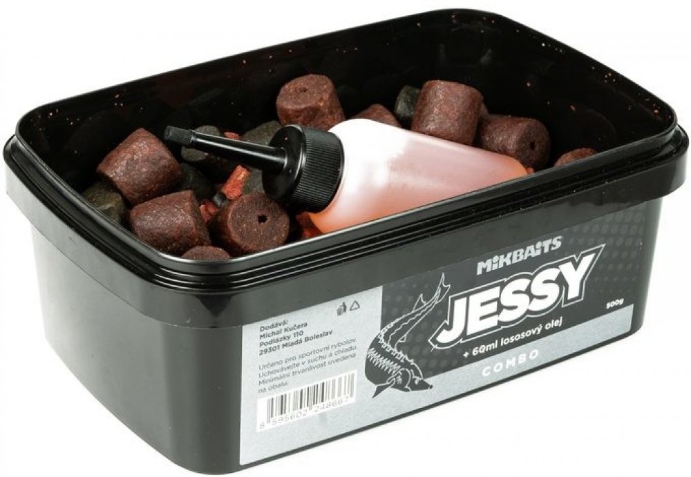 Mikbaits Jessy 500 g combo Jessy peletový mix + 60 ml lososový olej