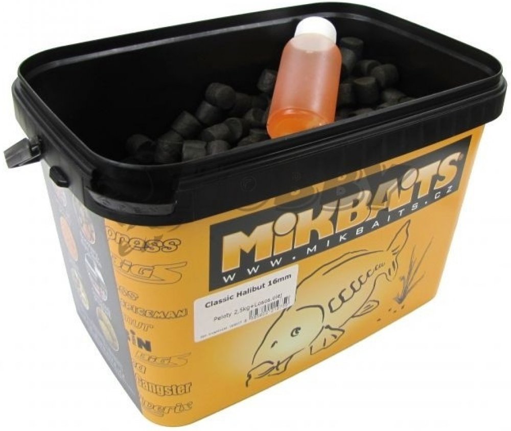 MIKBAITS Pelety Classic Halibut 2,5 kg 14 mm + 100 ml lososový olej