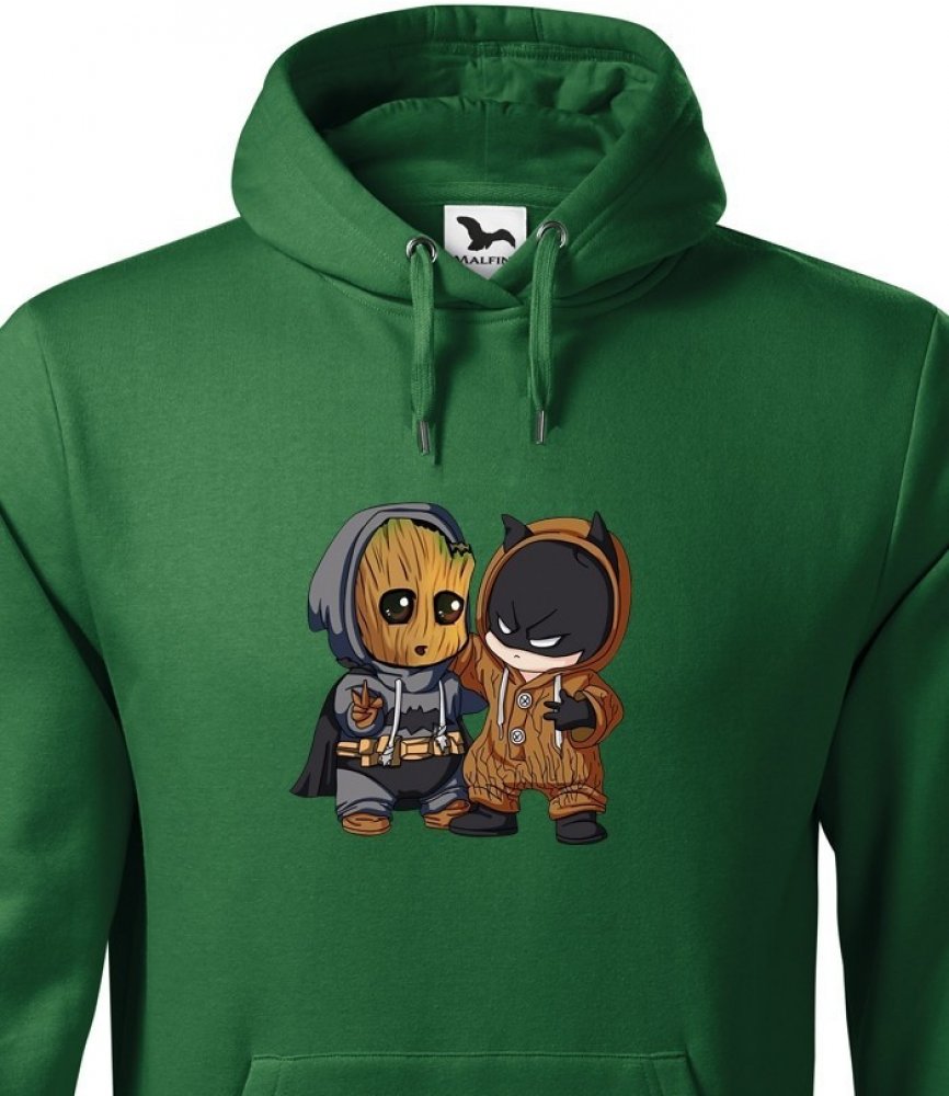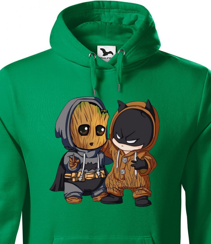 Mikina s potiskem Batman a Groot bude skvělé pro každého fanouška Marvelovek. Mezi oblíbená Marvel mikiny jistě svou nápaditostí zapadne. Mikina bude skvělé jako dárek k Vánocům i narozeninám.