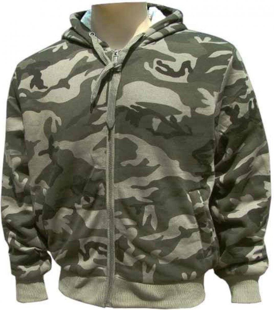 specifikace: maskáčová mikina z počesaného úpletu s pevnou neodnímatelnou kapucí