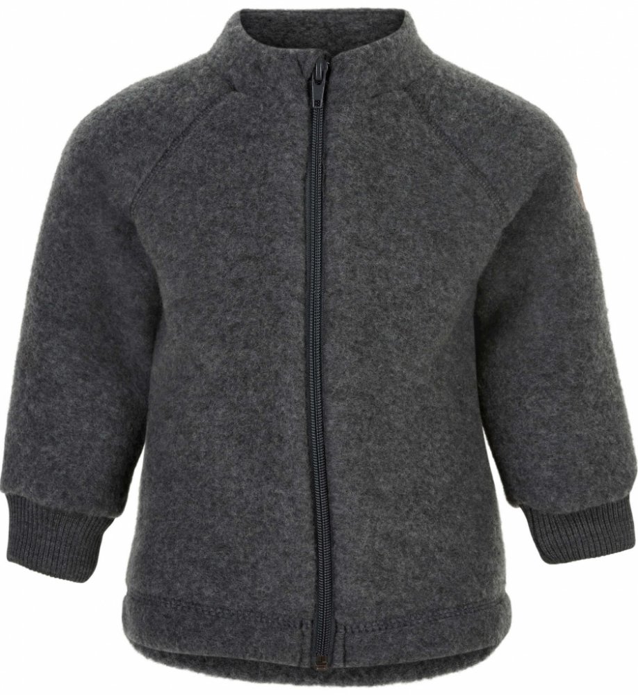 Mikk-Line dětská mikina na zip merino-fleece šedá Anthracite Melange