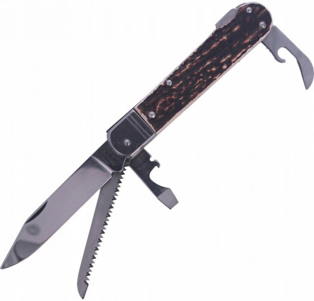 Lovecký nůž FIXIR je vybaven čepelí z velmi kvalitní nerezové oceli 440A o tvrdosti 54-57 HRc. Čepel loveckého nože FIXIR má kónický výbrus, což umožňuje nejen lepší řezivost, ale i údržbu. Tento typ loveckého nože FIXIR je také vybaven kvalitní pilkou s dvěma řadami zubů. Dále je tento lovecký nůž FIXIR vybaven otvírákem na konzevy a otvírákem na láhve, který lze použít i jako plochý šroubovák či k odstraňování izolace. Lovecký nůž FIXIR je dodáván včetně papírové dárkové krabičky, kožené pouzdro není součástí balení. Střenky loveckého zavíracího nože FIXIR jsou vyrobeny z velmi kvalitní imitace parohu. Lovecký nůž FIXIR je dodáván včetně papírové krabičky.
