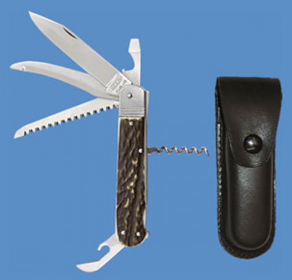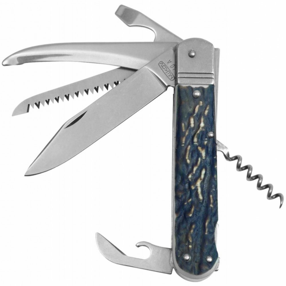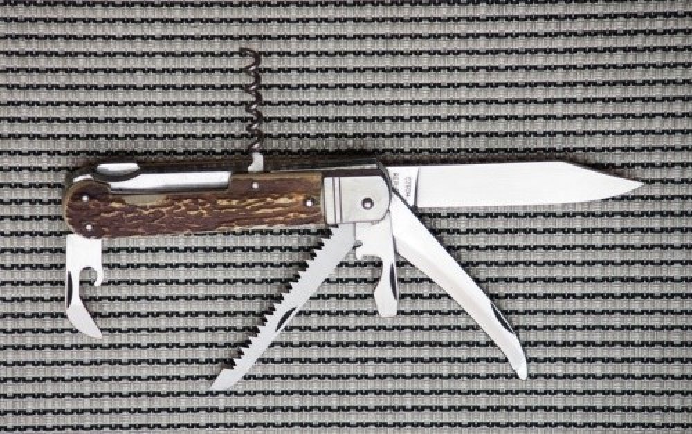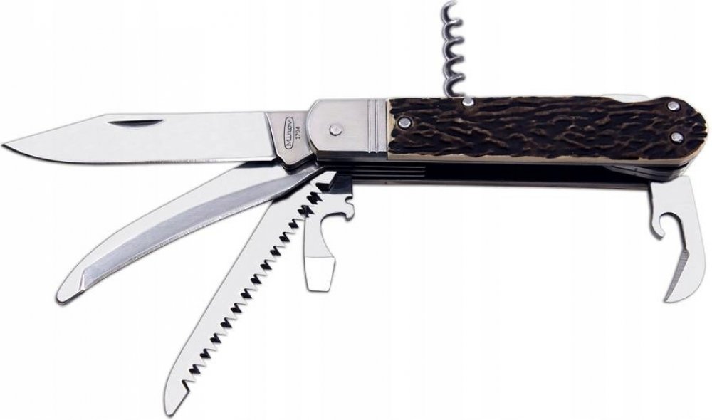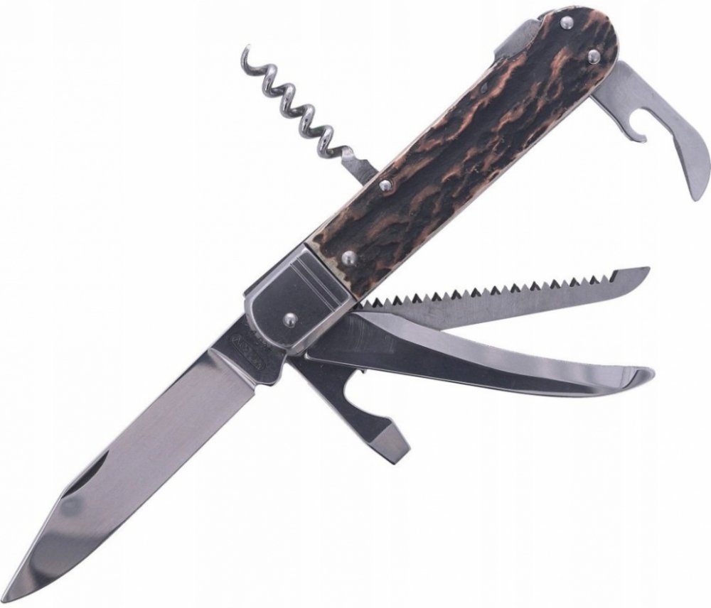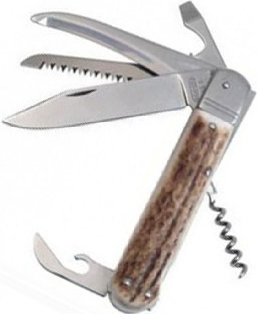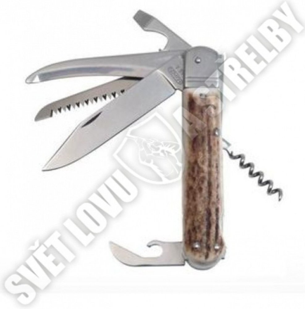 Kapesní zavírací lovecký nůž s hřbetní pojistkou čepele "backlock". Čepel nože z velmi kvalitní nerezové oceli AISI 440A o tvrdosti 56HRC. Kónický výbrus čepele nože zajišťuje lepší řezivost i údržbu. Kvalitní pilka se dvěma řadami zubů. Střenky nože jsou vyrobeny z odolného plastu v imitaci parohu.