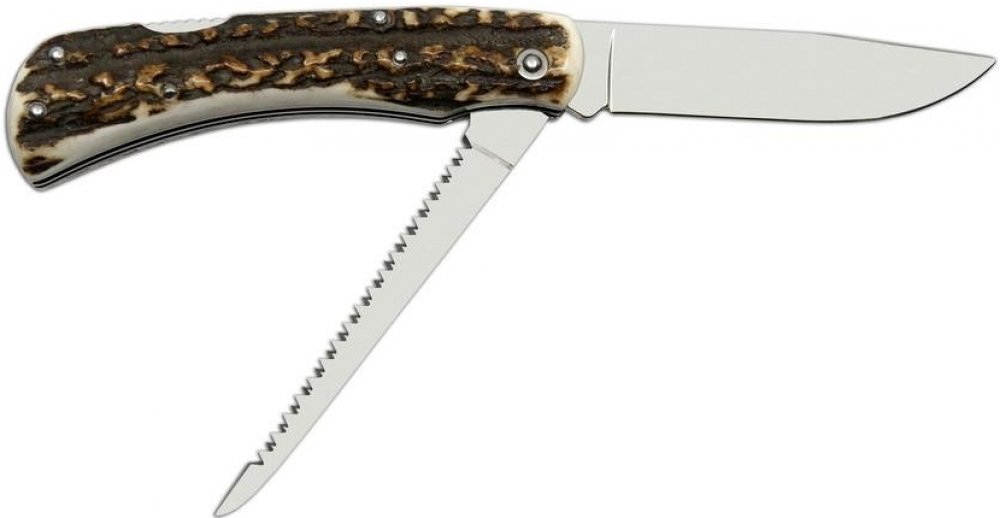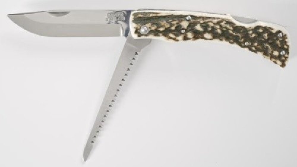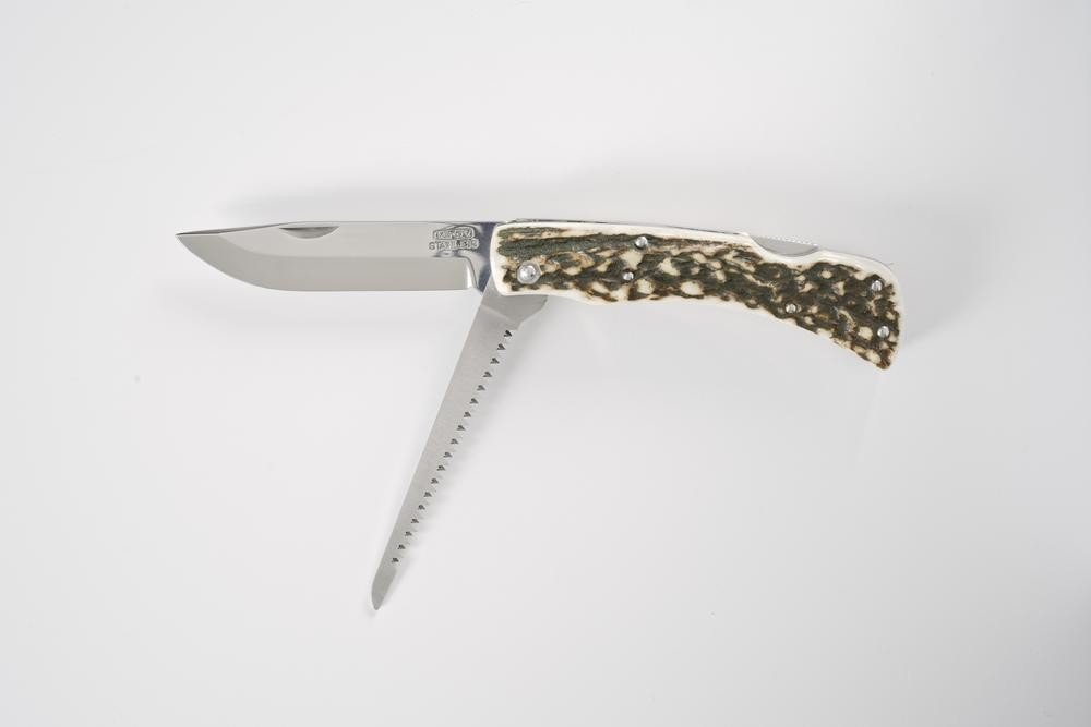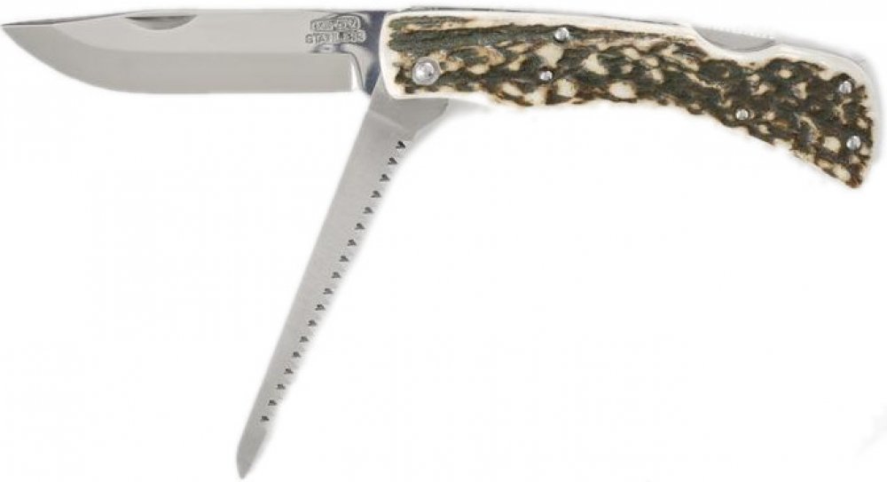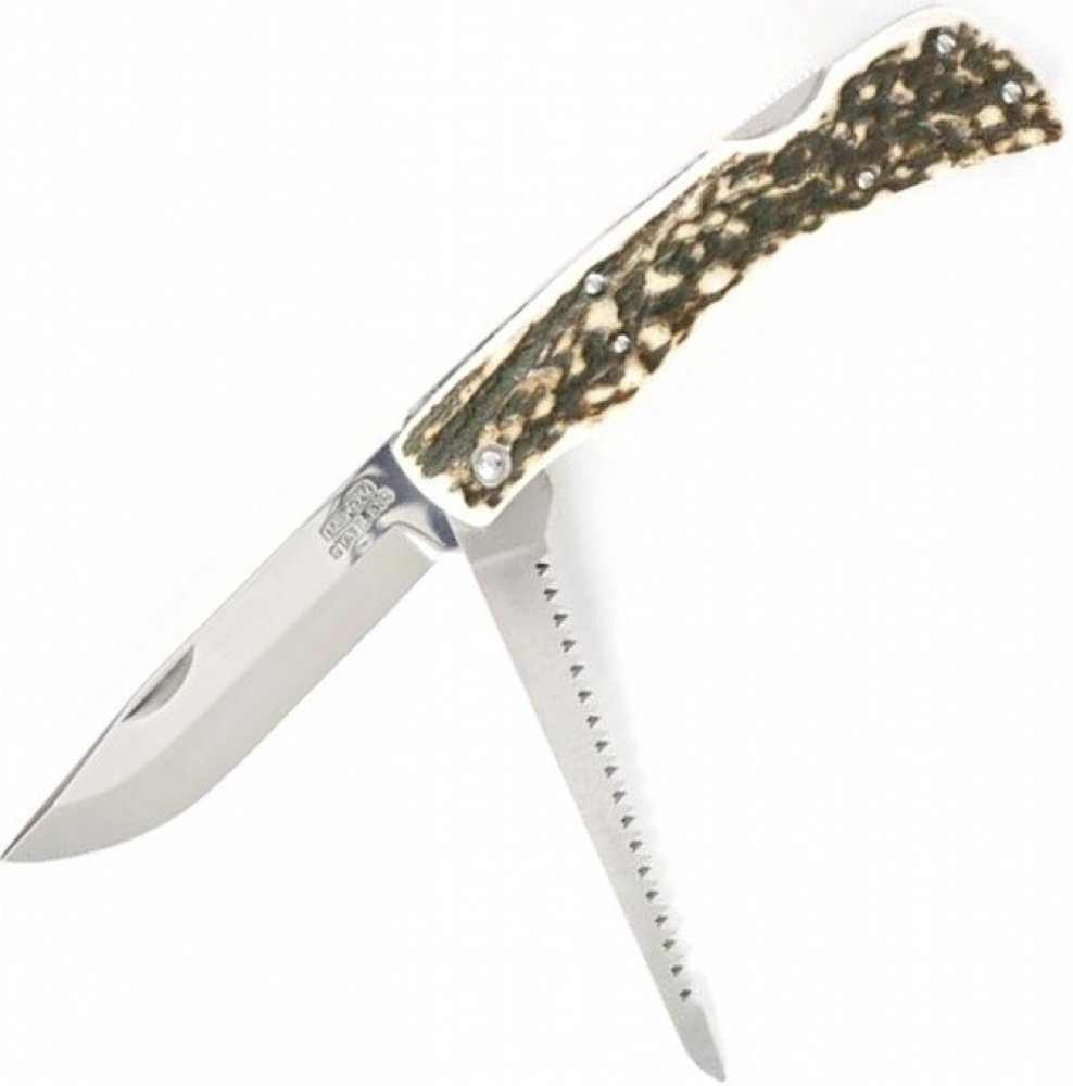 Pro výrobu střenky loveckého nože HUBERT jsme použili pravé jelení paroží. Čepel je vyrobena z kvalitní nerezové oceli 440A o tvrdosti 54-57 HRc. Čepel loveckého nože HUBERT je jištěna bezpečnostní pojistkou backlock. Lovecký nůž HUBERT je vybaven také velkou praktickou prodlouženou pilkou s otvíráním z čela nože - bez nehetníku, bez pojistky. Lovecký nůž HUBERT je dodáván včetně kvalitního koženého pouzdra s logem Mikov.