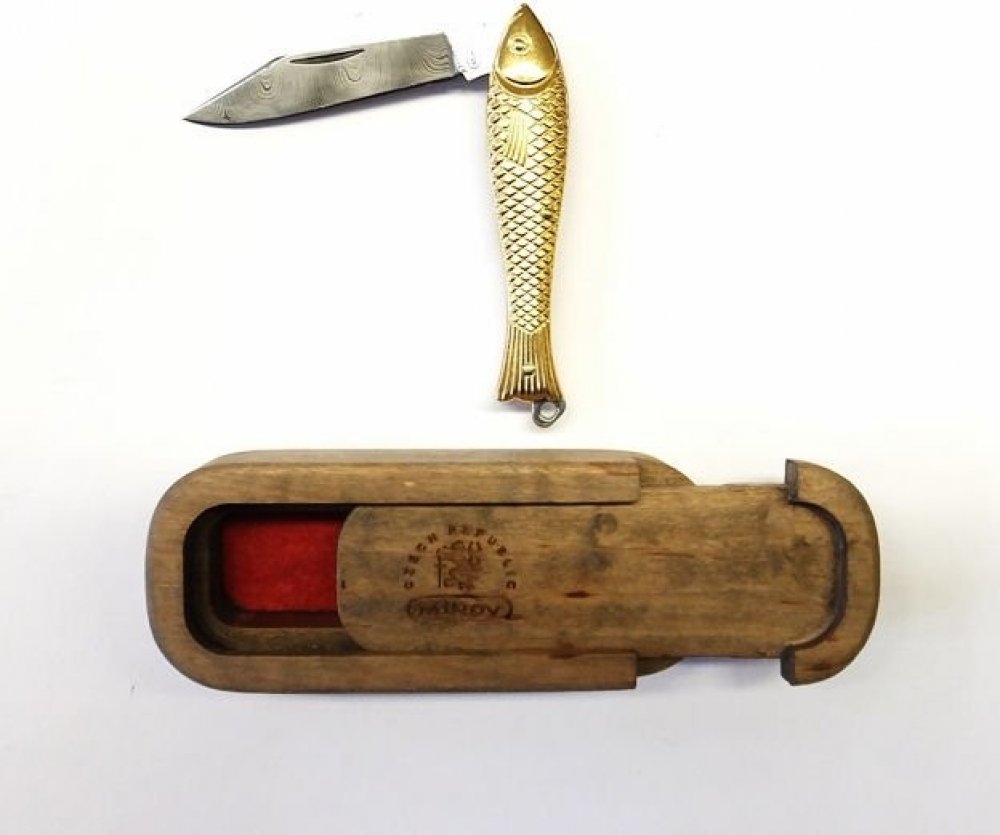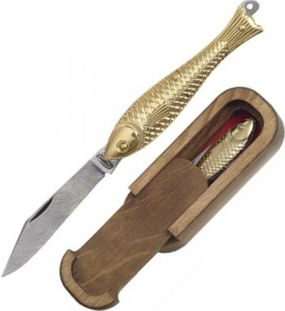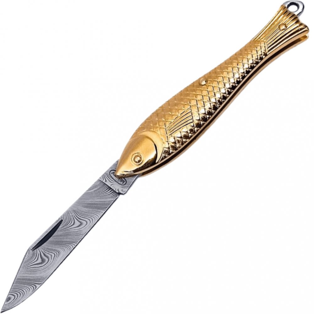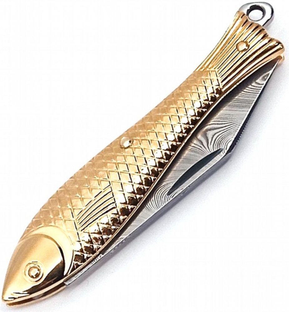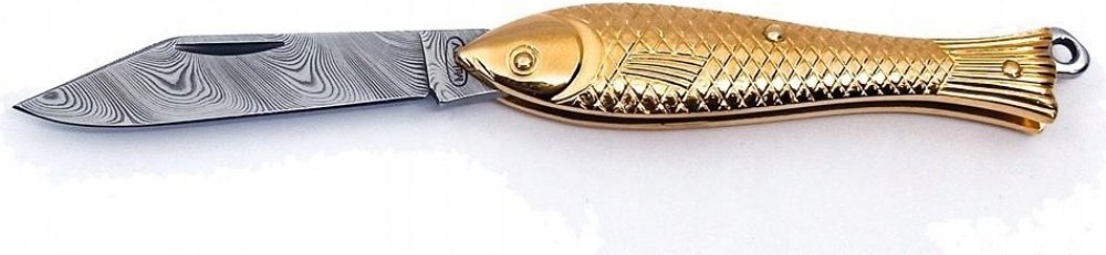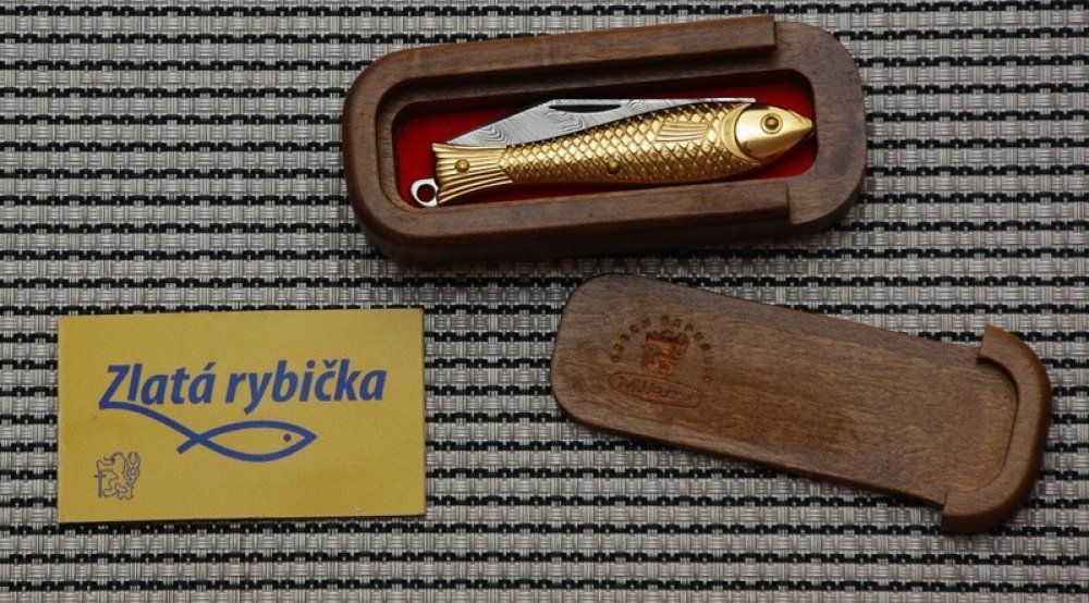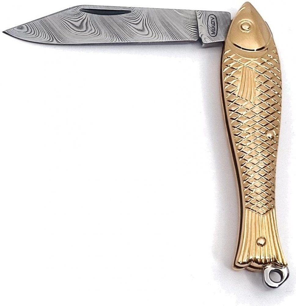 Mikov Nůž Rybička Zlatá 130-DZ-1 – Luxusní zlatý nůž s damaškovou čepelí