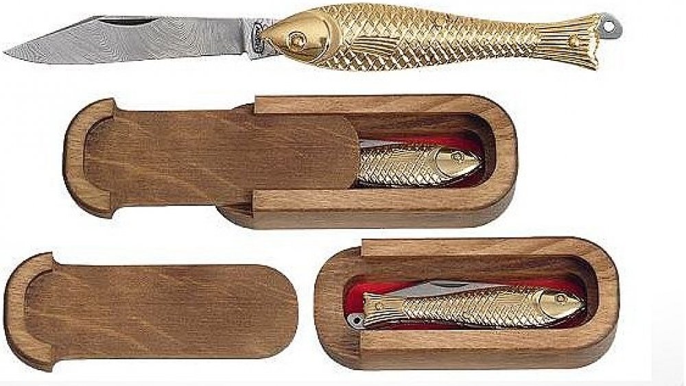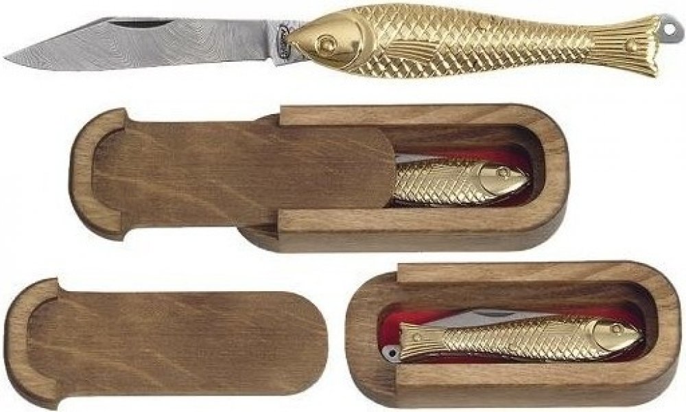 Tento nůž je ideální jako dárek díky svému luxusnímu vzhledu a kvalitnímu zpracování. Jeho pozlacená verze si získala velkou oblibu mezi sběrateli i běžnými uživateli. Dřevěná dárková krabička z ušlechtilého dřeva jen podtrhuje hodnotu tohoto unikátního kousku.
