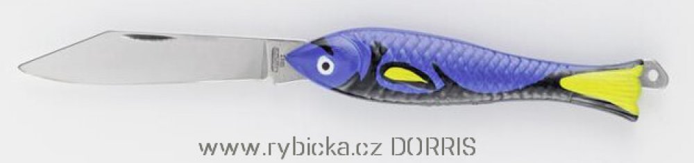 Ručně malovaná rybička zdobená vzorem. Dnes již klasický nůž, určený také pro děti, vyráběný firmou Mikov.