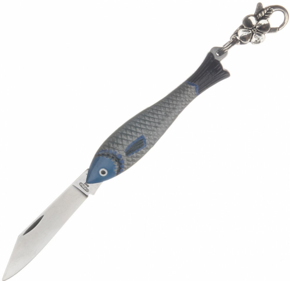 Střenky nože Rybička jsou vyrobeny ze zinkové slitiny a čepel nože je z kvalitní nerezové oceli typ 420 s tvrdostí 52-55 HRc.