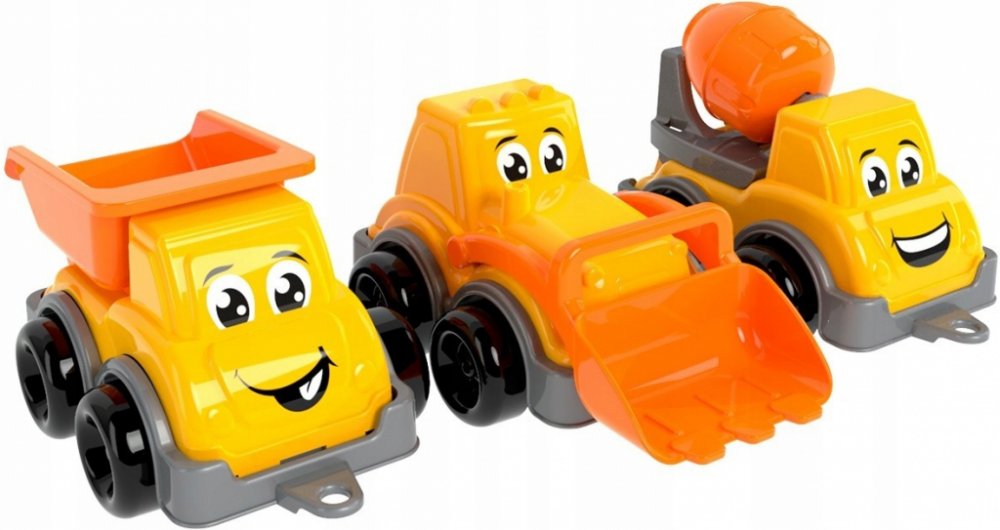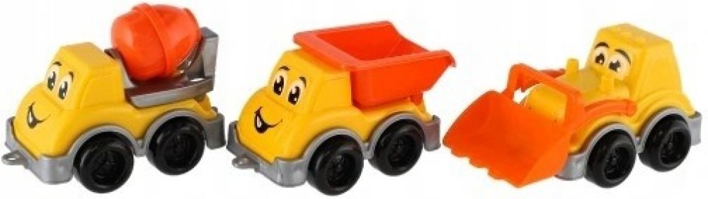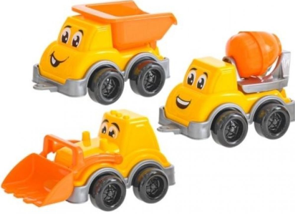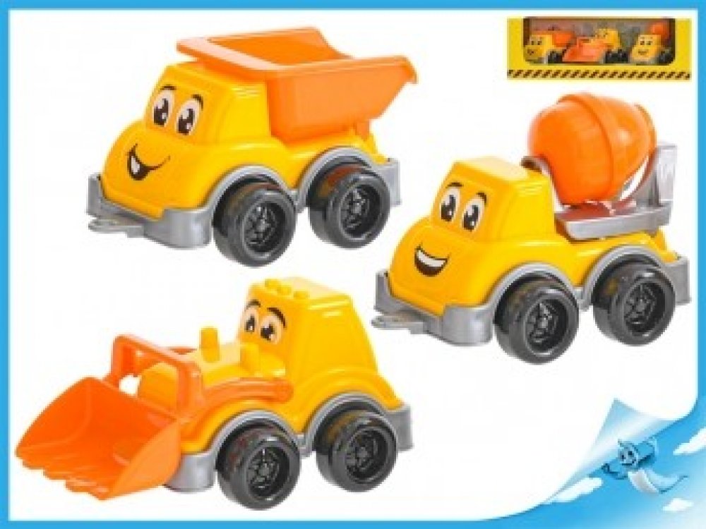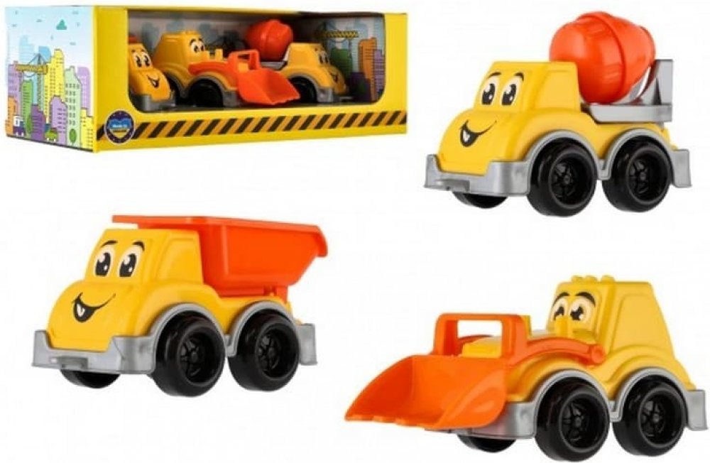 Sada 3ks veselých autíček z plastu v dětském designu. Sada 3ks veselých autíček z plastu v dětském designu.