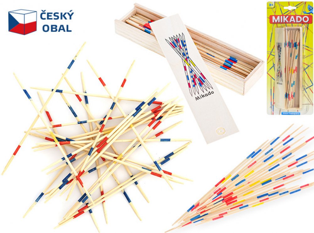 Mikádo se skládá z několika dřevěných tyči...