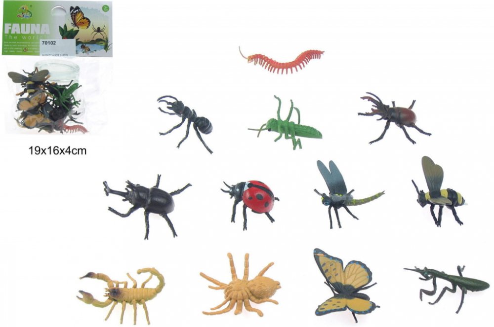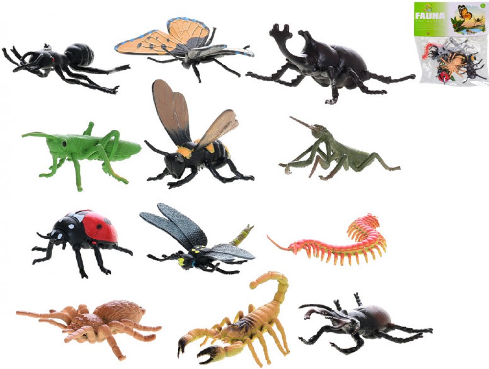 Balení dvanácti kusů figurek různého hmyzu. Rozměr: 5 - 12 cm Materiál: plast Baleno v sáčku.