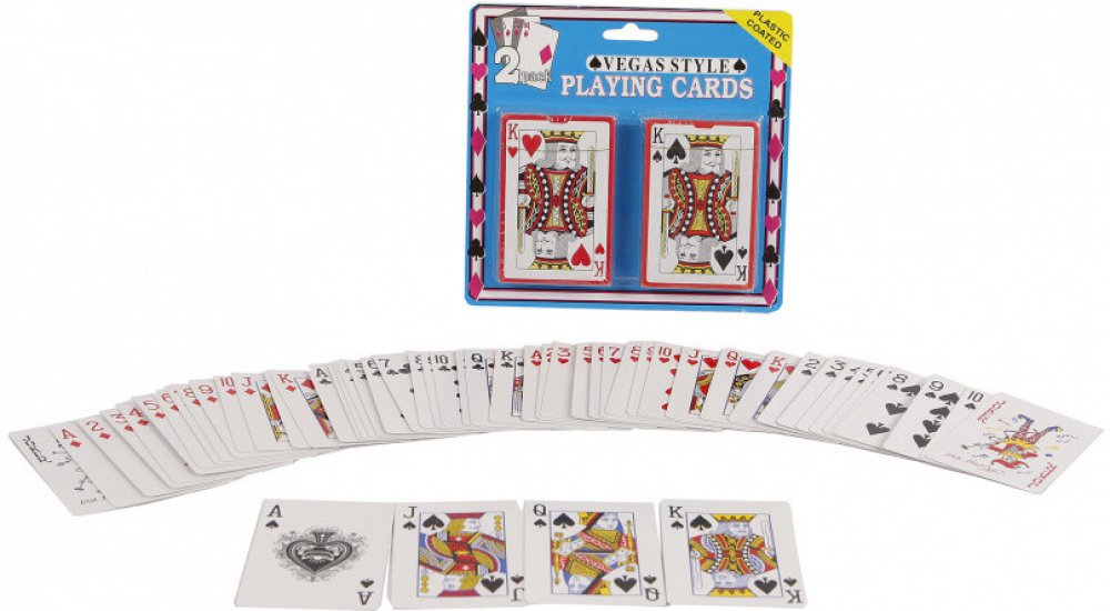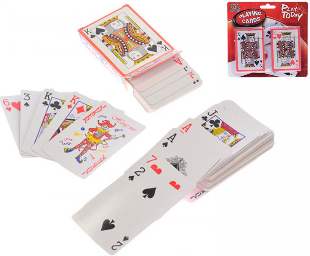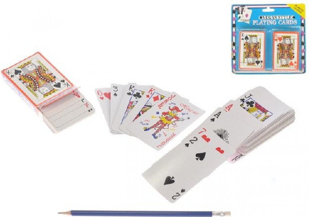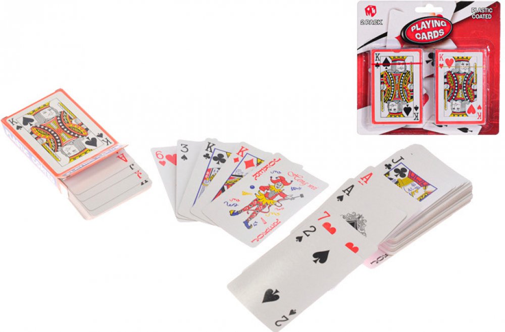 Hrací karty 2 sady hracích karet jsou vhodné pro malé i velké. Každý má rád zábavnou karetní hru ve svém čase. Zahrajte si s těmito hracími kartami ty nejlepší karetní hry. Karty jsou v angličtině (K, Q, J). Protože jsou karty plastické, zůstávají lépe chráněny před nečistotami a vlhkostí. Balení obsahuje dva balíčky hracích karet. Specifikace: Sada obsahuje karty s kartami, které jsou určeny k hraní: Rozměry karty: 9,5 x 6 cm (d x š) Věk: od 4 let Barva: pestrobarevná Materiál: měkčený karton Obsah: 2 sady hracích karet