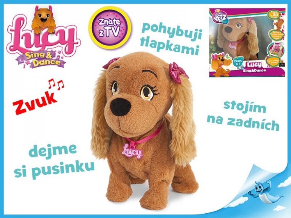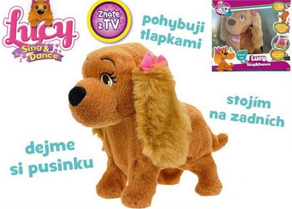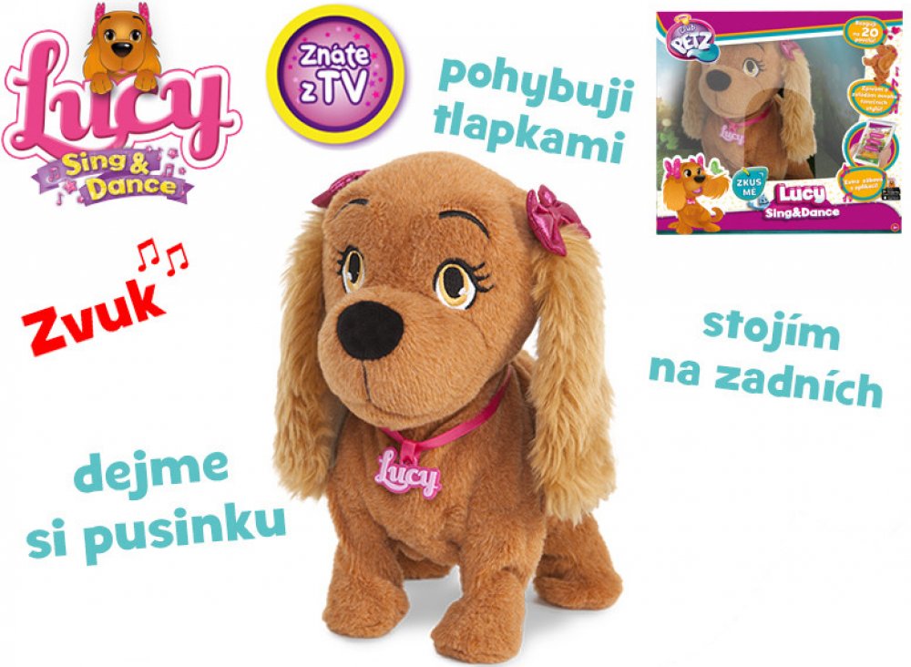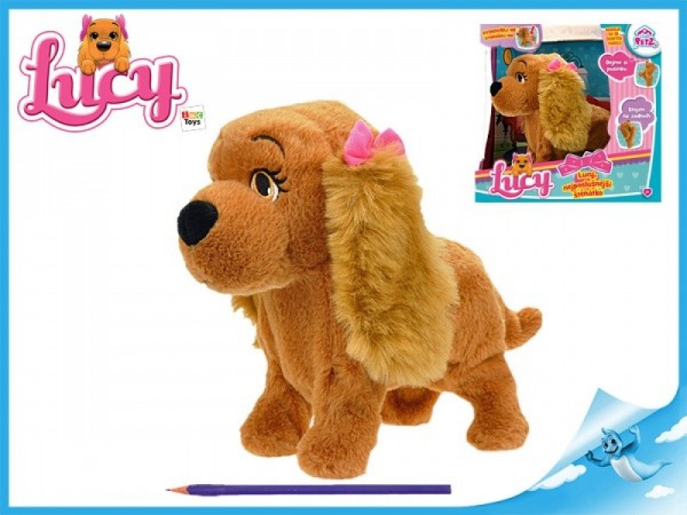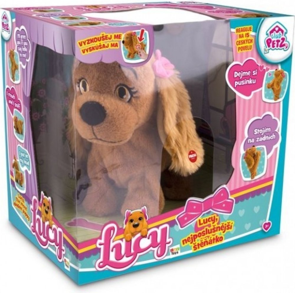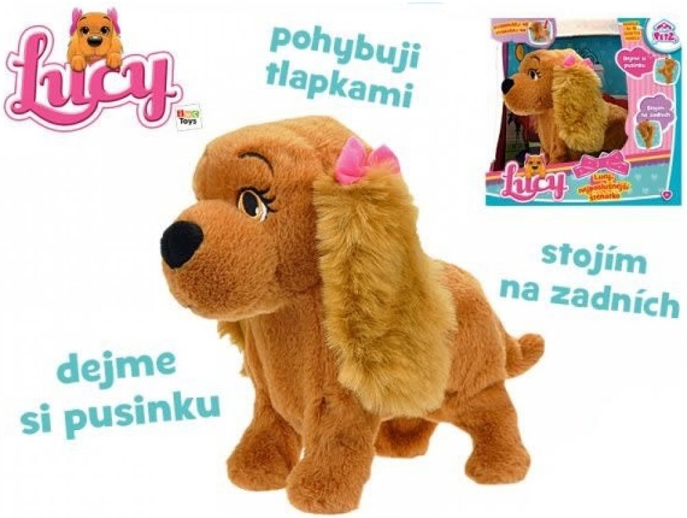 Lucy je interaktivní plyšový pejsek (plyšová fenka) s mašličkou na oušku o velikosti 29 cm, který dokáže reagovat až na 15 povelů v českém jazyce! Lucy = nejposlušnější štěnátko, jaké jste kdy měli!