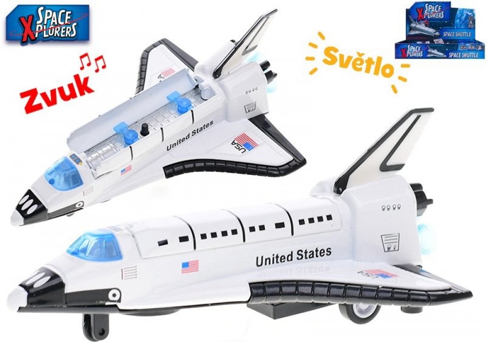 Kovový model vesmírné rakety na zpětný chod se světelnými a zvukovými efekty.