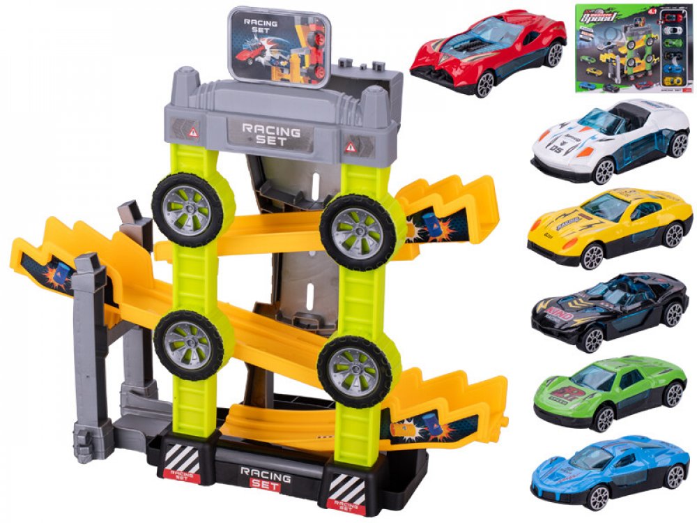 Tato závodní dráha se 4 auty různých barev je skvělým dárkem pro děti.
