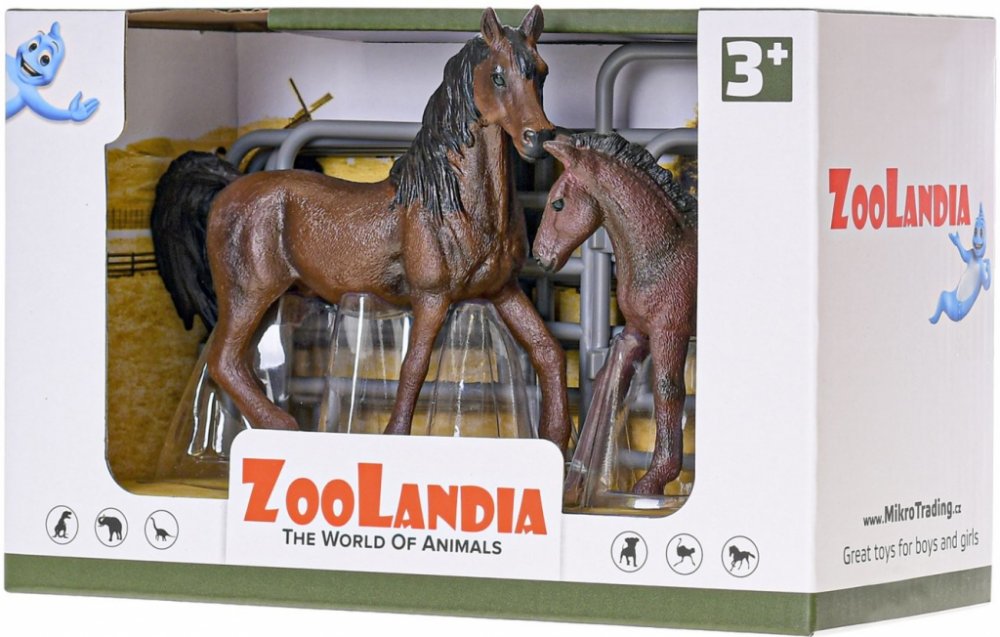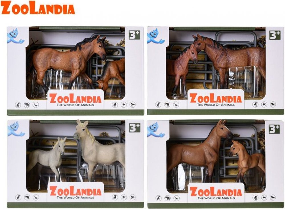 Sestav si svou vlastní farmu s figurkami z kolekce Zoolandia. Balení obsahuje koně s hříbětem a doplňky. Dostupné jsou 4 druhy - šedý kůň, světle hnědý kůň, tmavě hnědý kůň, světle hnědý kůň. Vhodné pro děti od 3 let.