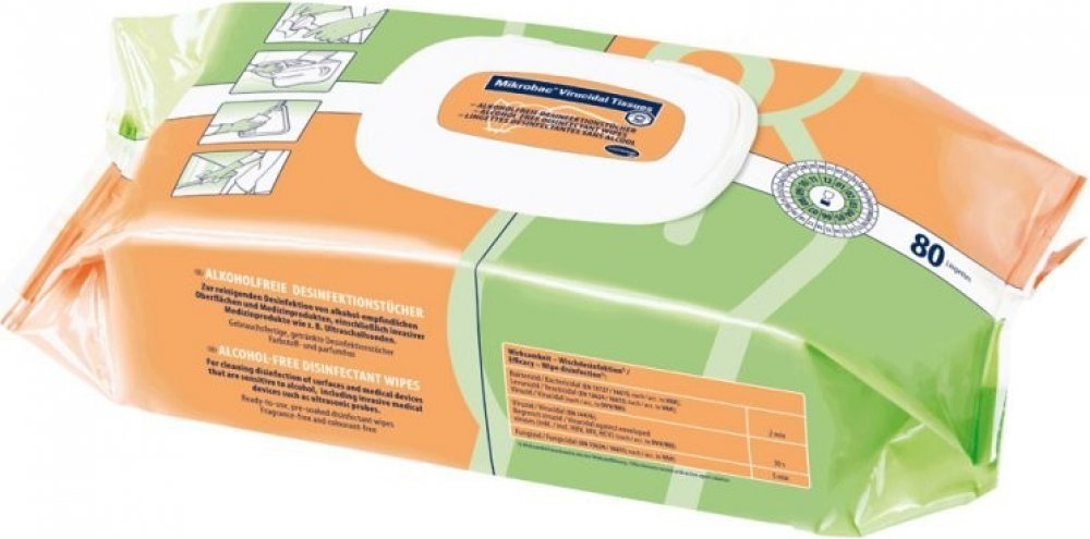 Mikrobac® Virucidal Tissues mají plně virucidní účinnost za 30 s a splňují požadavky všech legislativních směrnic týkajících se čištění a dezinfekce semikritických zdravotnických prostředků. Dezinfekční utěrky spolehlivě a rychle působí na neobalené viry, např. lidský papillomavirus.