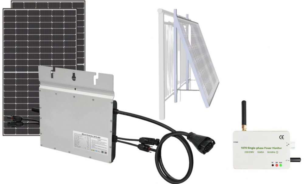 Kompletní balkonová fotovoltaika s mikroměničem SPD-800 a bezdrátovým smart meterem. Nová verze našeho mikroměniče! Má 2x MPPT, tedy můžete mít panely orientované na různé světové strany. Lepší chlazení a větší rozsahy napětí a proudu pro FV panely. Smart meter nově komunikuje s měničem přes Wi-Fi namísto 433 Mhz. Tato sestava je navržena speciálně pro jednoduchou instalaci na balkónové zábradlí. ...