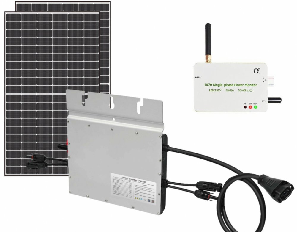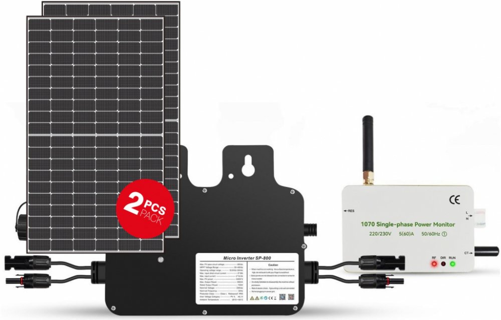 Kompletní Plug&Play fotovoltaika s mikroměničem SPD-800 a bezdrátovým smart meterem pro zamezení přetoků. Nová verze našeho mikroměniče! Má 2x MPPT, tedy můžete mít panely orientované na různé světové strany. Lepší chlazení a větší rozsahy napětí a proudu pro FV panely. Smart meter nově komunikuje s měničem přes Wi-Fi namísto 433 Mhz. Hotové řešení Plug & Play bez nutnosti složitých stavebních úpr...