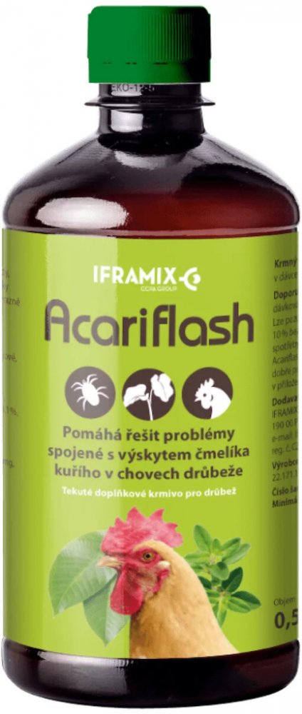 Acariflash je přírodní tekuté doplňkové krmivo určené pro drůbež (slepice, křepelky, krůty, bažanty aj.), které působí odpudivě proti čmelíkům (Dermanyssus gallinae) a dalším roztočům. Obsahuje komplex rostlinných výtažků a esenciálních olejů, které jsou čmelíkům nepříjemné, a tím omezují jejich sání krve a rozmnožování, aniž by jakkoli ovlivnily kvalitu vajec či masa.