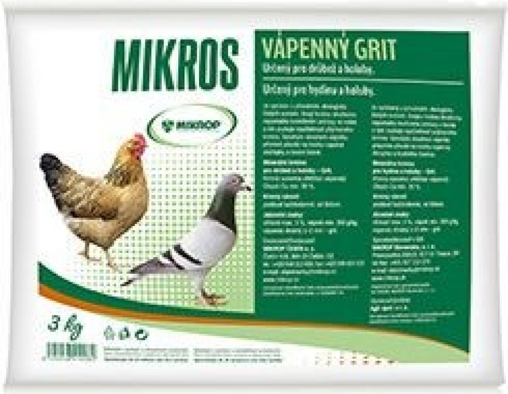 MIKROP Mikros Vápenný grit pro drůbež a holuby 3 kg