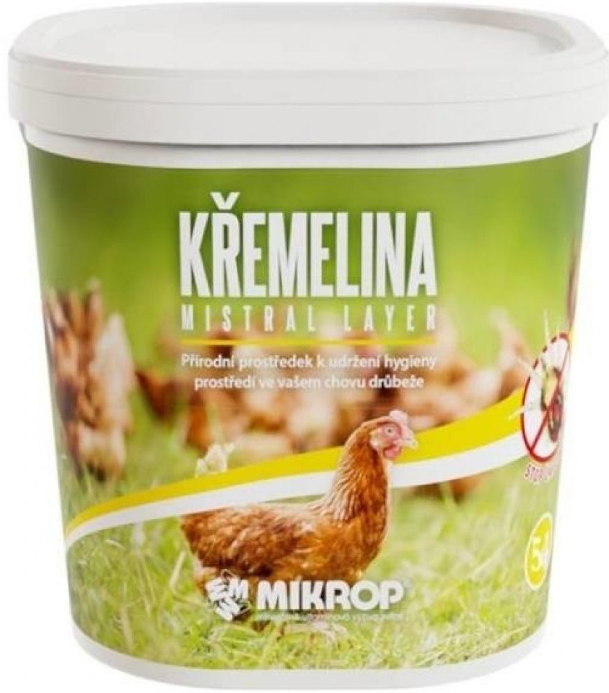 Křemelina Mistral Layer je přírodní prostředek určený k udržení hygieny v chovu drůbeže a k účinnému omezení výskytu čmelíka kuřího a dalších roztočů.
