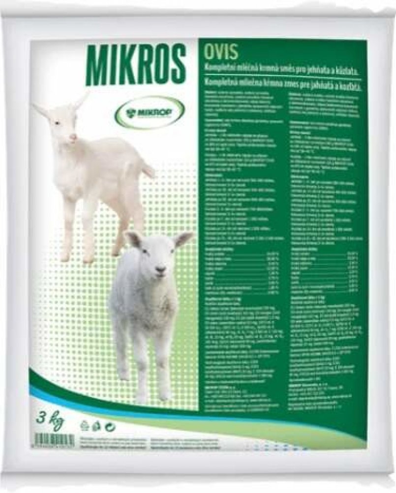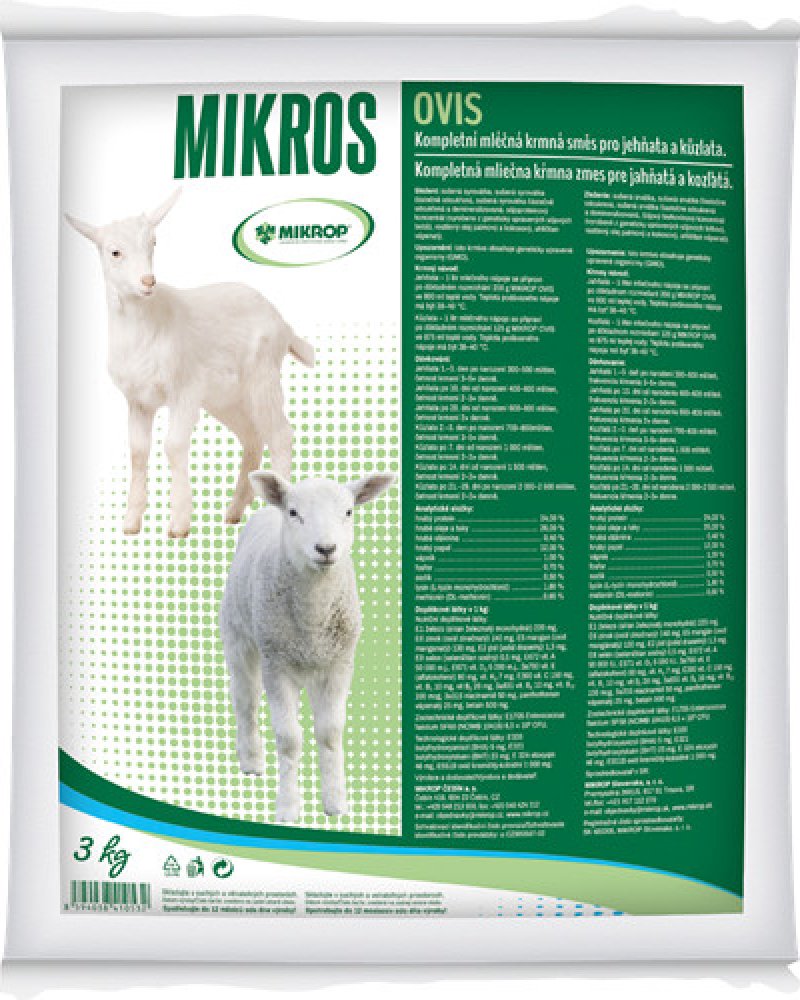 Sušené mléko Mikrop Ovis se svými parametry se přibližuje složení ovčího mléka. S využitím mléčné krmné směsi MIKROP OVIS je možné praktikovat dřívější přechod na mléčnou krmnou směs v systému dvojího bahnění ročně, nebo trojího bahnění za 2 roky. Vhodný je i v případě úhynu kojící bahnice. MIKROP OVIS je předpokladem pro intenzifikaci chovu ovcí. Učeno pro jehňata, kůzlata.