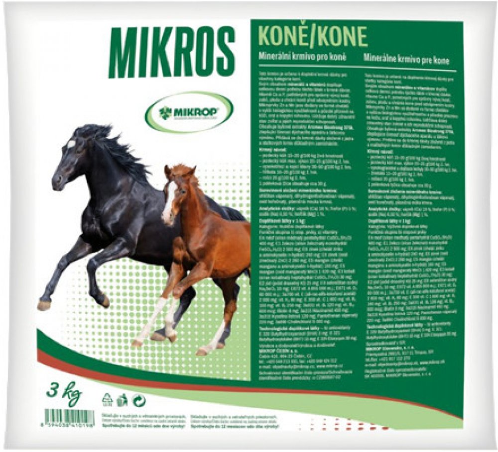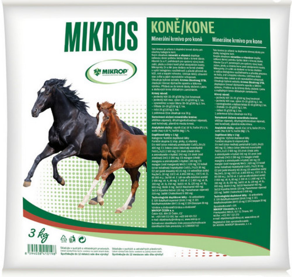 Toto minerální krmivo pro koně slouží k zajištění optimální hladiny minerálních prvků, vitamínů a aminokyselin nezbytných pro výživu dané kategorie zvířat. Stopové prvky jsou dotovány ve formě bioplexů, organická forma, lepší využitelnost. Přidává se do krmné dávky složené z jádra a statkových krmiv důkladným zamícháním.