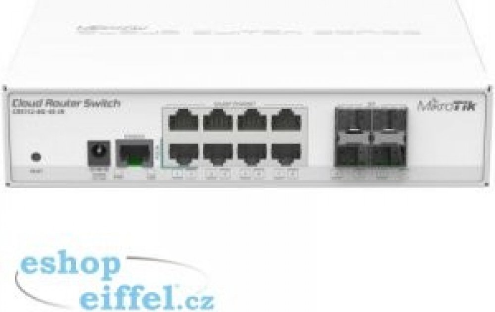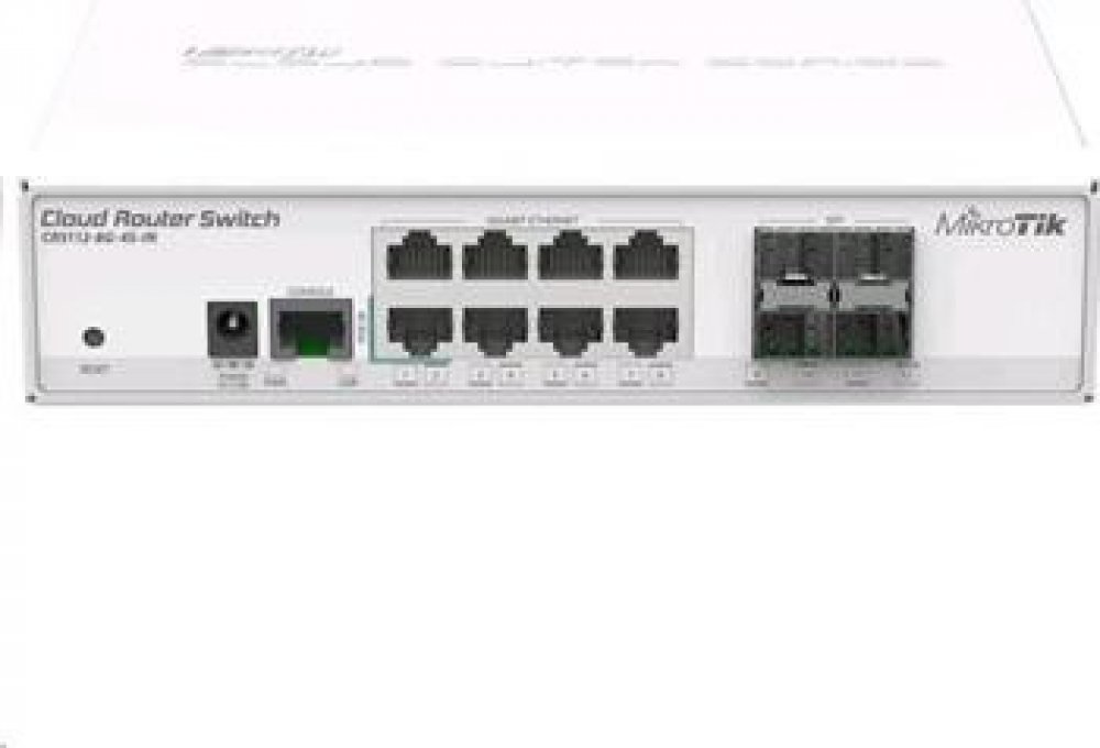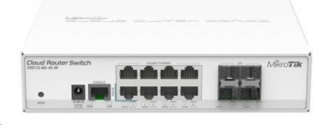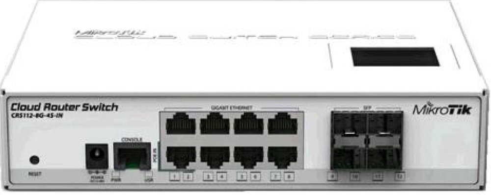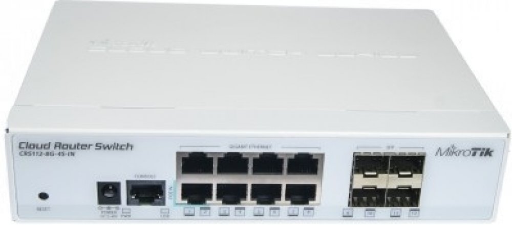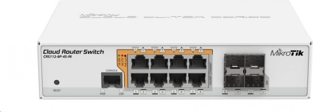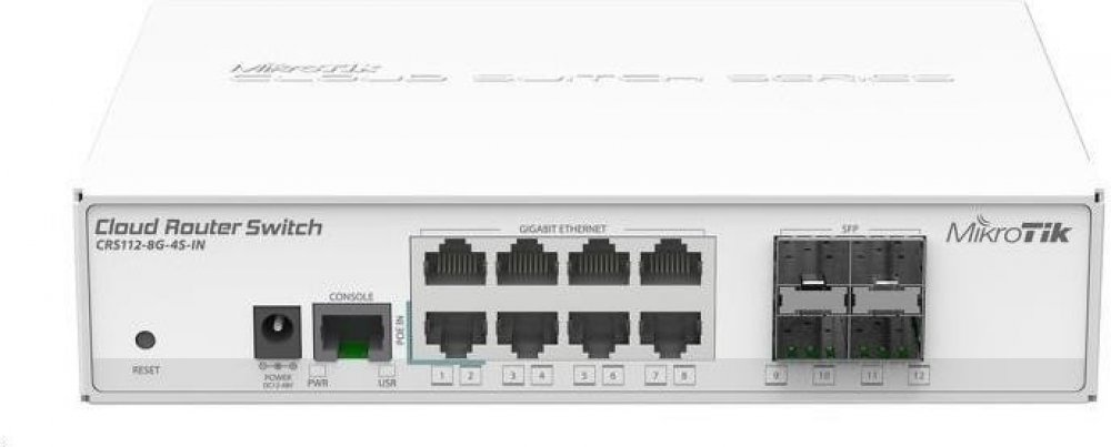 * Cloud Router Switch 112-8G-4S-IN is a “small size low cost” member of our CRS series. It comes with eight Gigabit Ethernet ports and four SFP cages.