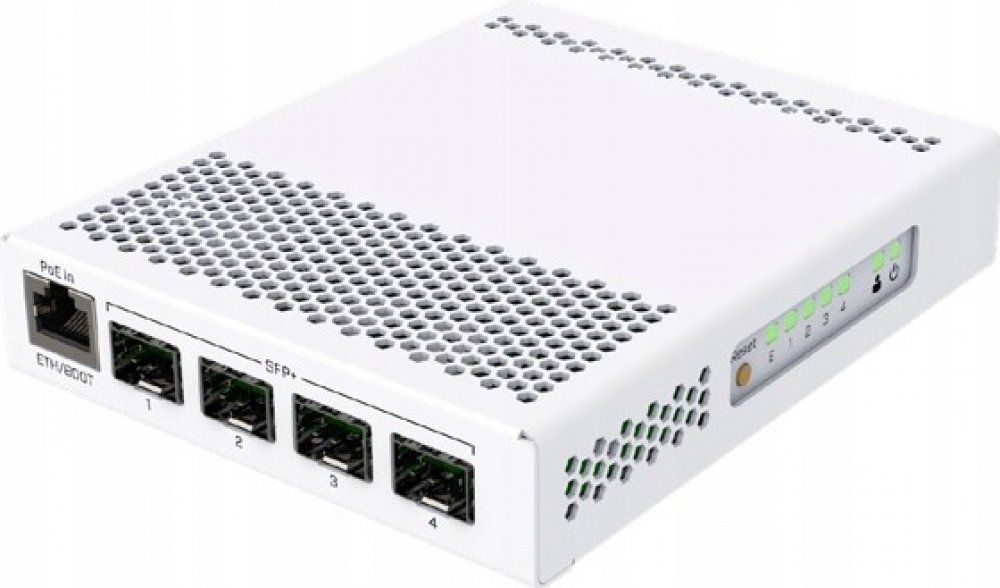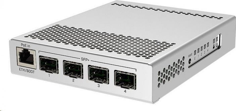 CRS305-1G-4S+IN je kompaktní, přesto velmi výkonný switch, který má čtyři SFP+ porty s rychlostí 10 Gbps/port. Zařízení má také kromě optických portů i jeden Gigabitový ethernet s podporou POE IN pro snadný přístup k zařízení, konfiguraci zařízení nebo jako převod na metalické vedení. K napájení slouží hned dva DC konektory pro redundanci napájení. Switch je velmi elegantní, kompaktní a jeho kovov...