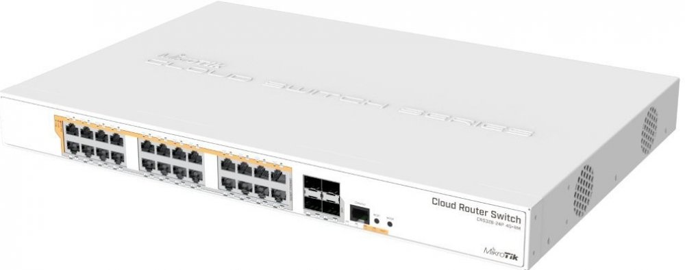 Výkonný Cloud Core Switch s 24x Gbit PoE LAN porty a 4x SFP+ porty.