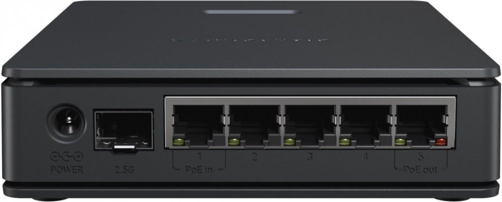 Pět portů Gigabit Ethernet a 2,5 Gigabit SFP klec. Umožňuje přímé připojení optického vlákna k domu nebo připojení rychlého NAS serveru pro bleskurychlý místní přístup.