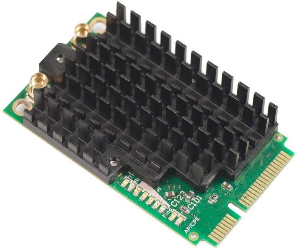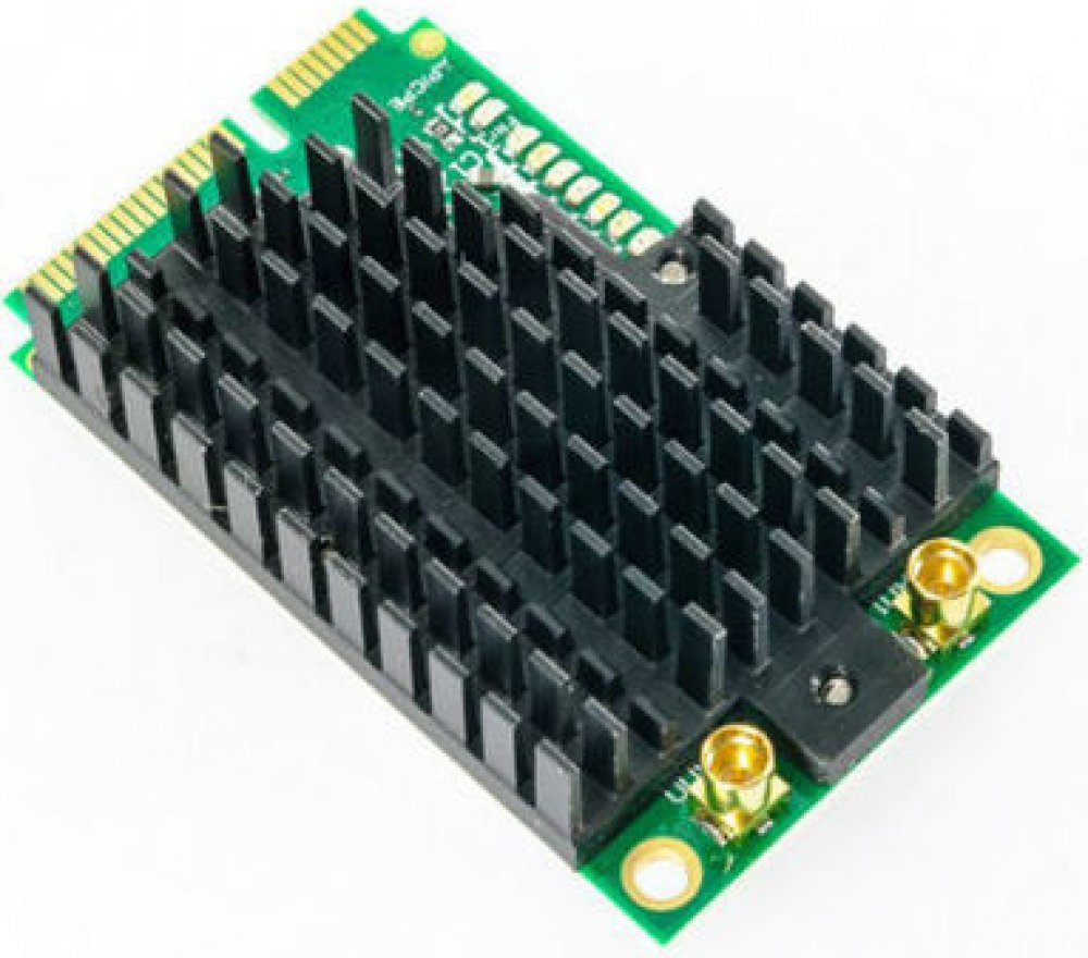 Výkoná bezdrátová karta ve formátu miniPCI-e. Ideálně se hodí pro novou řadu RB912 ale i pro starší RB800 nebo nové miniPCIe adaptéry RB14e a RB14eU. MiniPCI karta také obsahuje LED diody pro indikaci signálu bezdrátového režimu (stav připojení, vyhledávání, vypnuto).