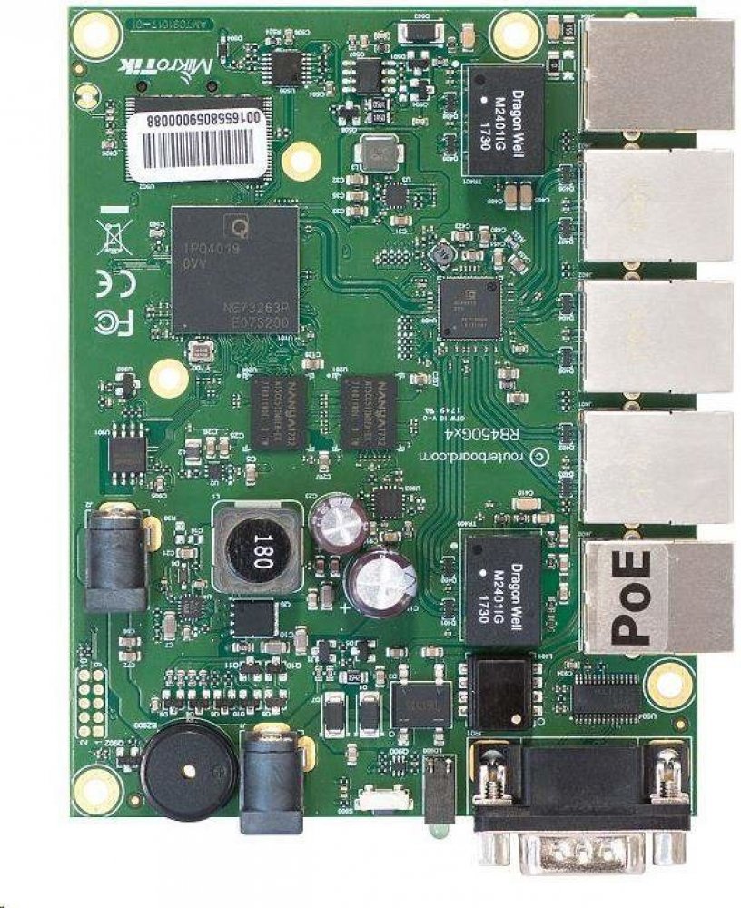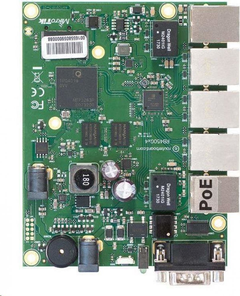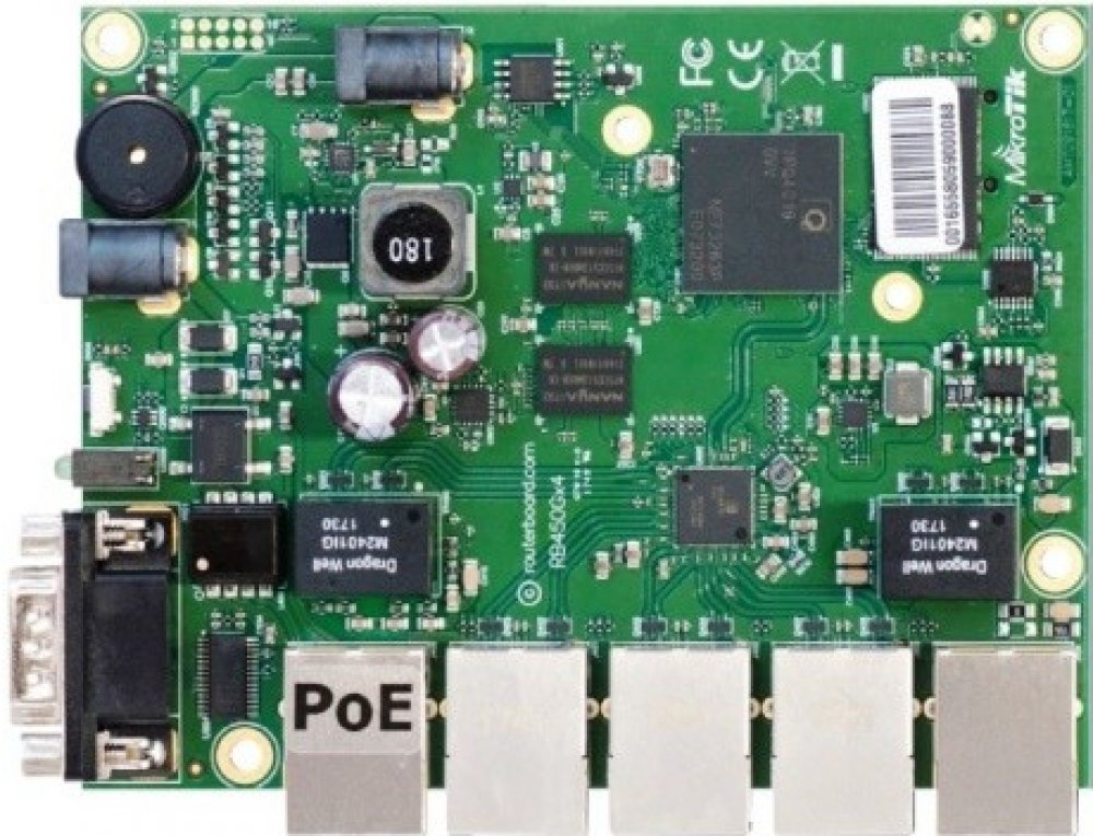Výkonný nástupce mini routeru RB450G. Oproti předchozímu modelu je osazen velmi výkonným 4jádrovým procesorem s frekvencí 716 MHz, paměť byla rozšířena na 1 GB a byla podpora PoE standardu 802.3af/at.