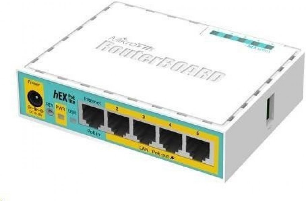 RB750UPr2 má 4 PoE porty (porty 2-5). Lze tak napájet např. další AP nebo routery. Díky USB portu lze zařízení rozšířit např. o externí disk. RouterBoard je dodáván s licencí L4.