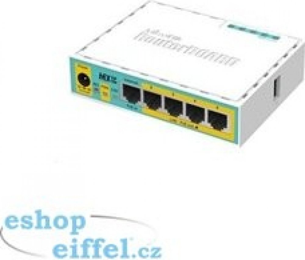 RouterBoard je možné napájet nejen pomocí klasického konektoru jack, ale také přes PoE. Velkou předností je možnost napájení dalších zařízení po PoE. Maximální výstup na jeden port je 1 A, dohromady pak max. 2,2 A (RouterOS MikroTik v. 5.20). Součástí balení je také kvalitní napájecí adaptér.