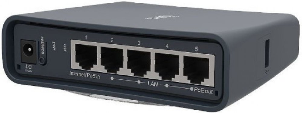 Zařízení má 5 Ethernet portů umožňující přenosovou rychlost až 100Mbps. Poslední port umožňuje funkci PoE Out pro napájení dalšího zařízení - např.: SXT jednotky na střeše domu. Napájet jednotku lze dvěma způsoby a to buď přes pasivní PoE nebo DC konektor. Jednotka je dodávána včetně L4 licence a plnohodnotného USB portu pro připojení USB disku a nebo 3/4G modemu.