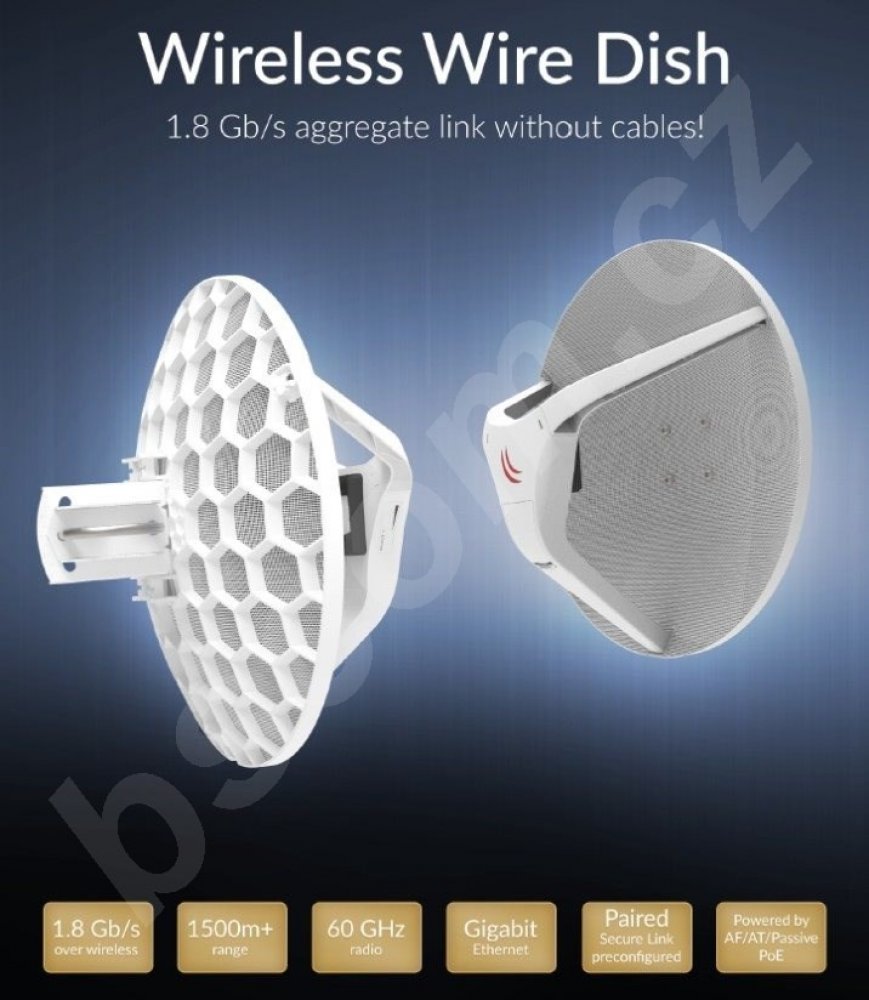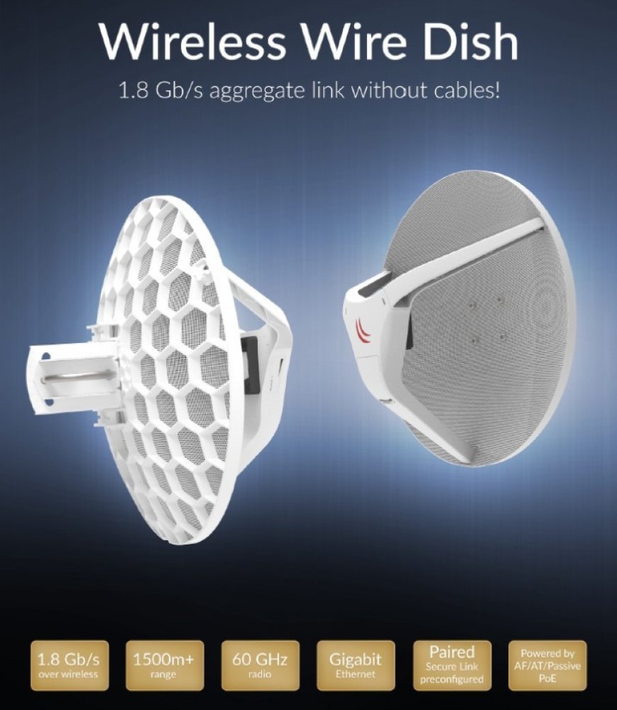 Sada 2ks AP, která nahrazuje gigabitový kabel - jedná se o plně duplexní bezdrátová pojítka standardu 802.11ad v bezlicenčním pásmu 60 GHz na vzdálenost až 1,5km.