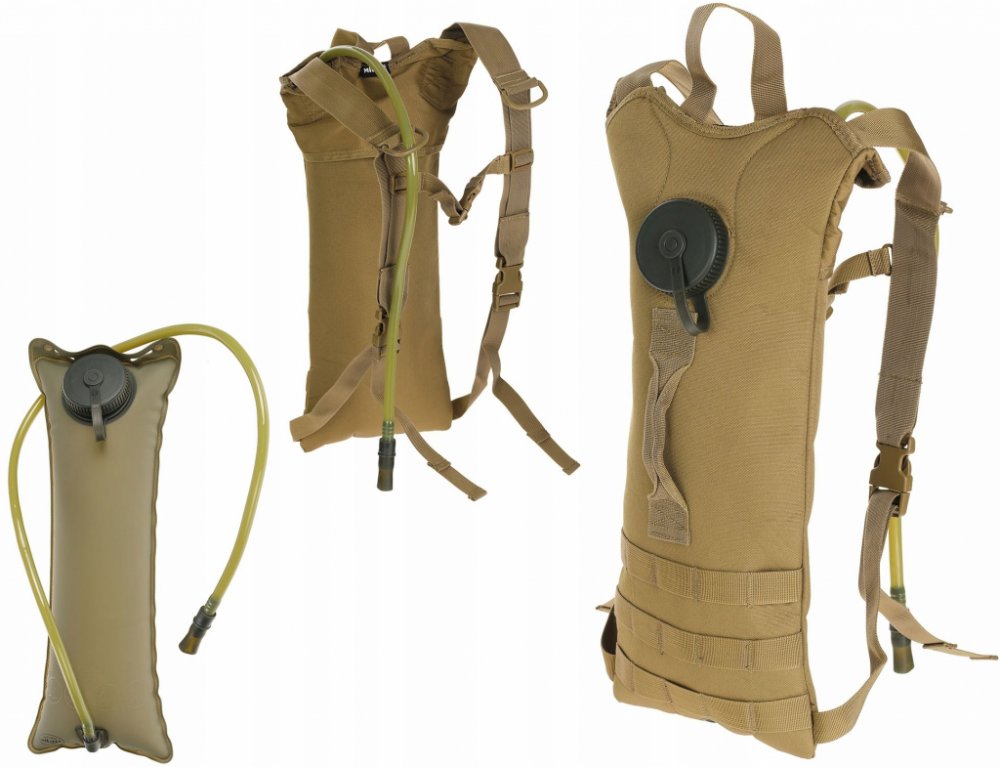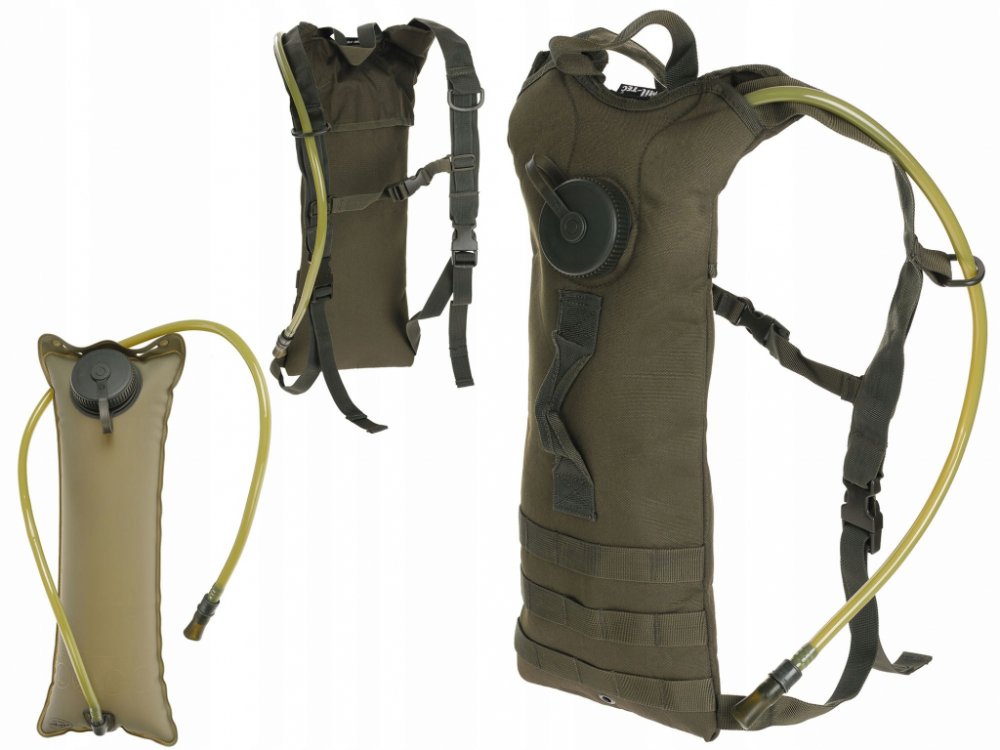 Batoh na vodu (hydratační) od německého výrobce Mil-tec o objemu 3 litry. Obsahuje flexibilní hadičku s kvalitním ventilem což umožňuje pít tekutinu i během chůze. Hydratační batoh se pohodlně nosí díky popruhům jako na klasickém batohu.